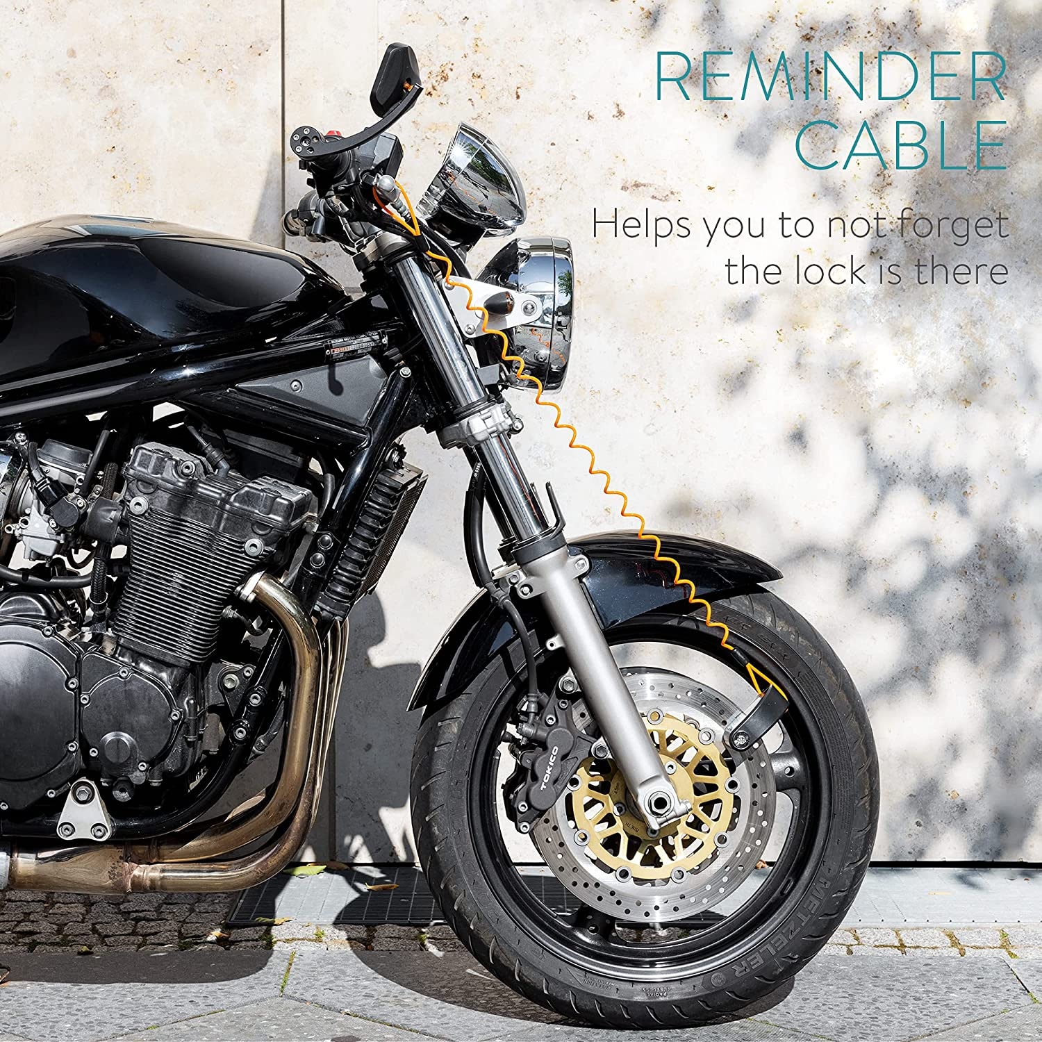 Η κλειδαριά συνοδεύεται από καλώδιο υπενθύμισης μήκους 1,2 μέτρων που συνδέεται από την κλειδαριά του τροχού στο τιμόνι. Υπάρχει ως μέτρο ασφαλείας για να σας υπενθυμίσει ότι η κλειδαριά είναι ακόμα συνδεδεμένη και ελαχιστοποιεί την ακούσια ενεργοποίηση του συναγερμού!