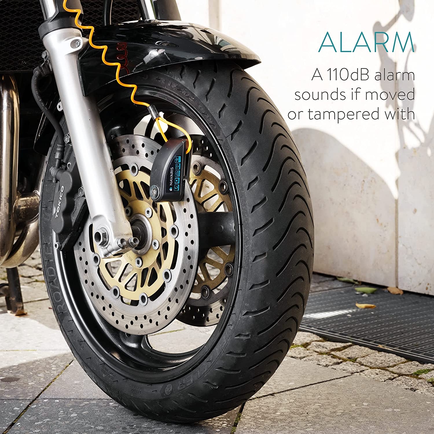 Αυτή η αντικλεπτική κλειδαριά διαθέτει ενσωματωμένο συναγερμό 100dB. Ο ήχος του συναγερμού θα ενεργοποιηθεί αυτόματα εάν αισθανθεί δόνηση ή κραδασμό. Ο δυνατός θόρυβος λειτουργεί αποτρεπτικά για να αποθαρρύνουν τους κλέφτες! Είναι κατάλληλη για μοτοσικλέτες ή σκούτερ, ποδήλατα βουνού και ποδήλατα δρόμου.
