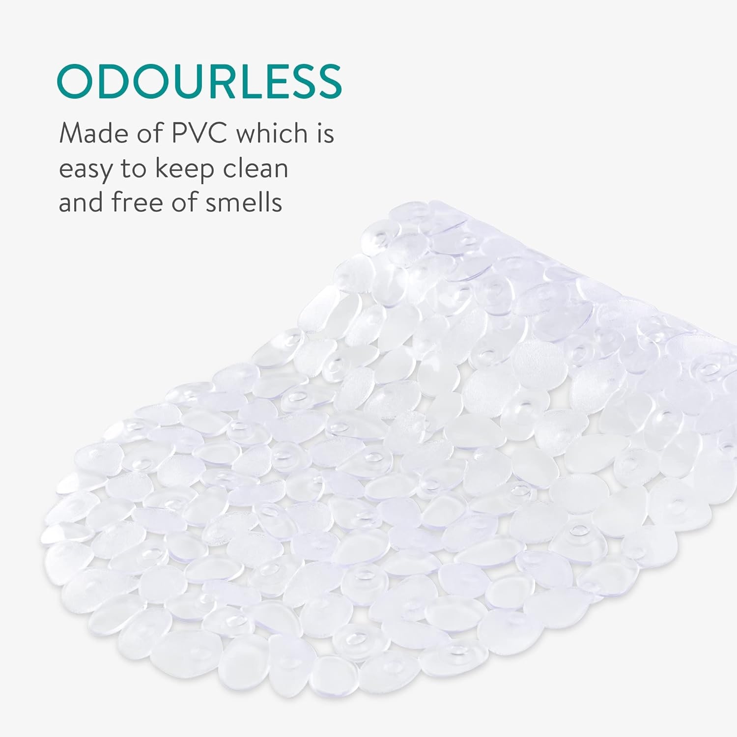 Αυτές οι ισχυρές βεντούζες παρέχουν σταθερό κράτημα, χάρη στον μοναδικό σχεδιασμό, ενώ το υλικό PVC αντιστέκεται στις οσμές και καθαρίζεται εύκολα, το πατάκι είναι επίσης μαλακό και εύκαμπτο, ενώ καλύπτει ολόκληρη την επιφάνεια της μπανιέρας σας, χάρη στις διαστάσεις 99 x 39 cm. Επίσης, οι ειδικές τρύπες που διαθέτει στραγγίζουν και απομακρύνουν το νερό εύκολα.