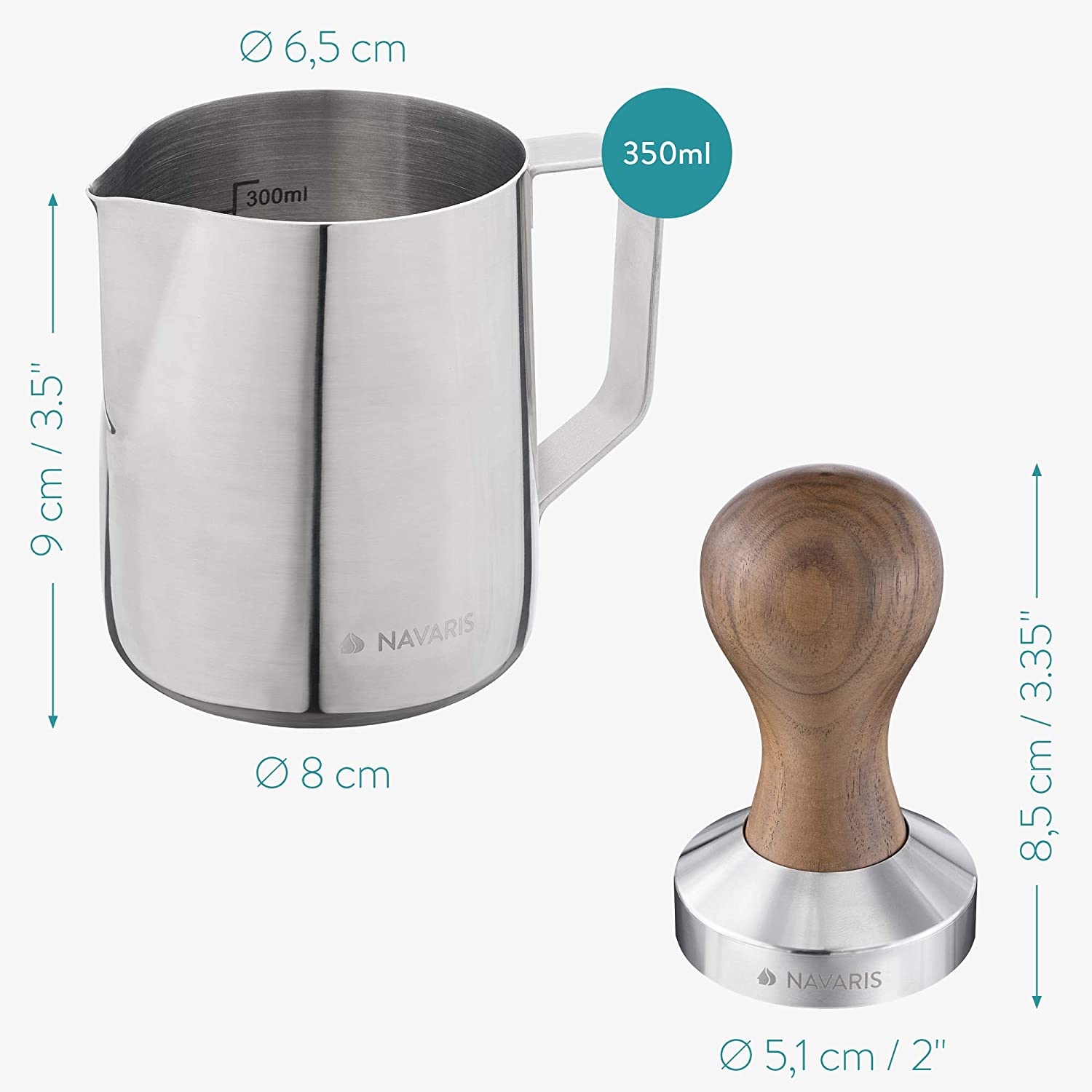Το πατητήρι από ανοξείδωτο ατσάλι και η κανάτα γάλακτος από τη Navaris, σας βοηθά να απολαύστε την πολυτέλεια του εσπρέσο στο σπίτι σας.