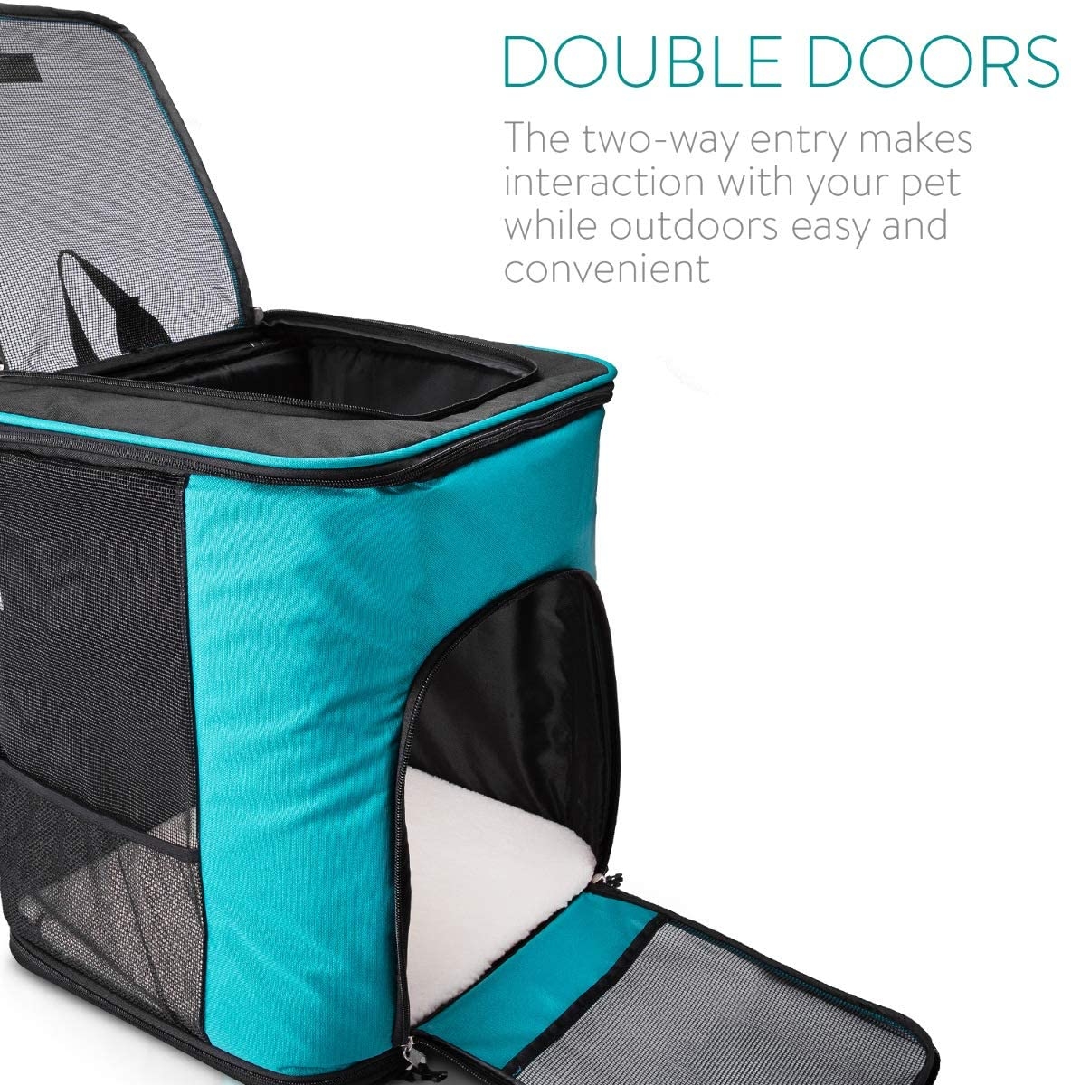 Μεταφέρετε τη γάτα ή το σκύλο σας άνετα ενώ ταξιδεύετε, κάνετε ποδηλασία, περπάτημα, κάμπινγκ, πεζοπορία και πολλά άλλα. Διαθέτει δύο εισόδους, που το καθιστούν ιδανικό για να αλληλεπιδράτε με το κατοικίδιό σας, ενώ βρίσκεστε σε εξωτερικούς χώρους.