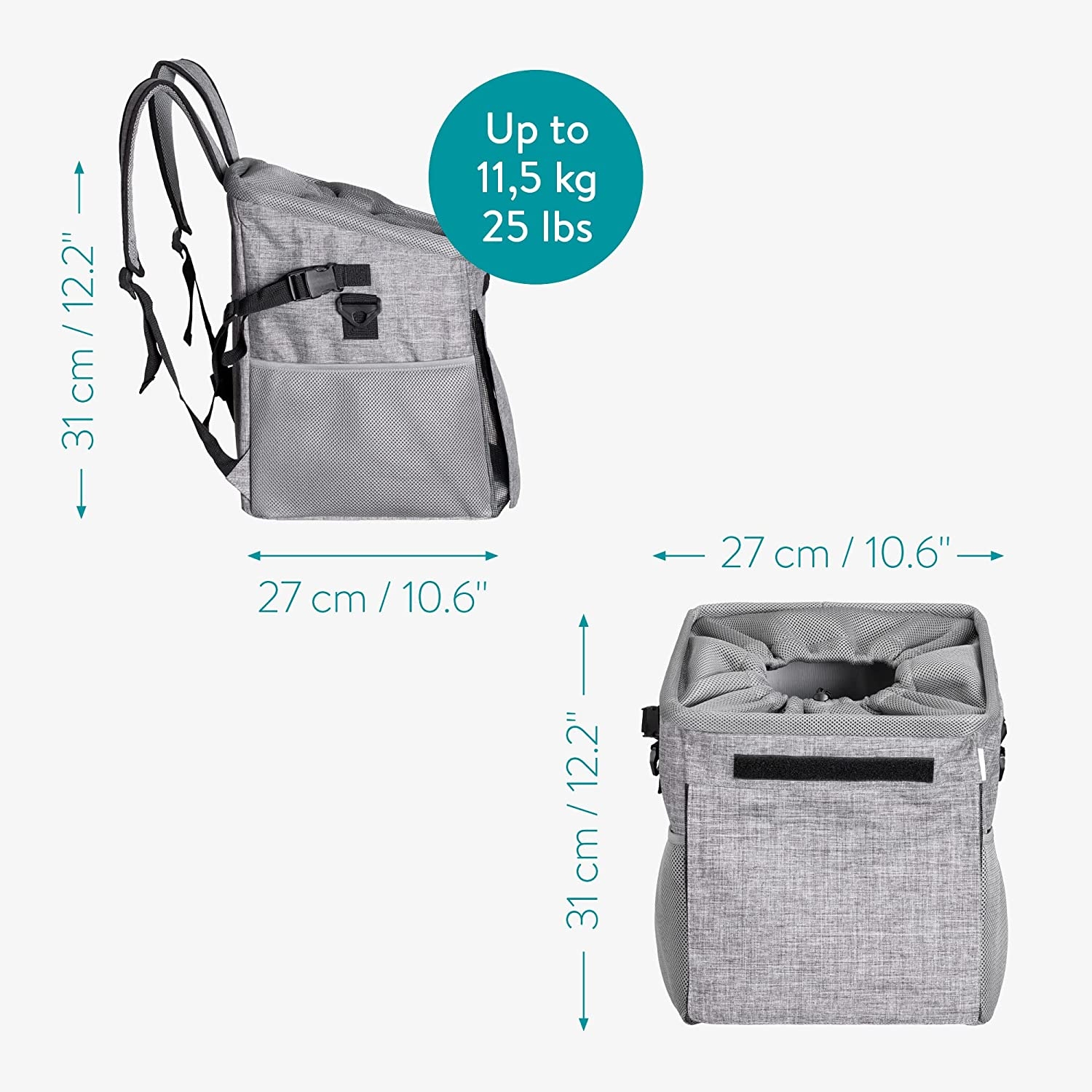 Είτε πρόκειται για ποδήλατο, για περπάτημα, για εκδρομές ή για τον δρόμο προς τον κτηνίατρο, η τσάντα μεταφοράς μπορεί να χρησιμοποιηθεί με πολλούς τρόπους και έχει χωρητικότητα έως 11,5 κιλά.