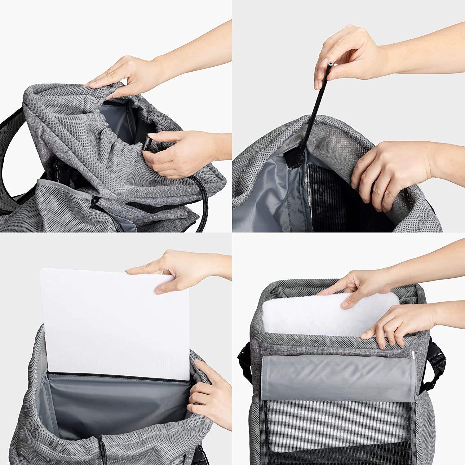 • Με ασφαλές άνοιγμα με κορδόνι που δεν επιτρέπει στο κατοικίδιο σας να πηδήξει κατά τη μεταφορά