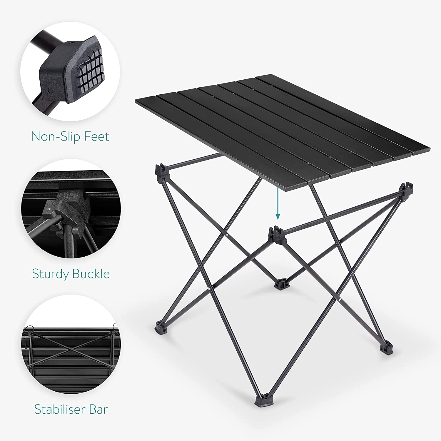 Navaris Portable Folding Camping Table - Φορητό Τραπέζι Αλουμινίου - Black (45382.01)