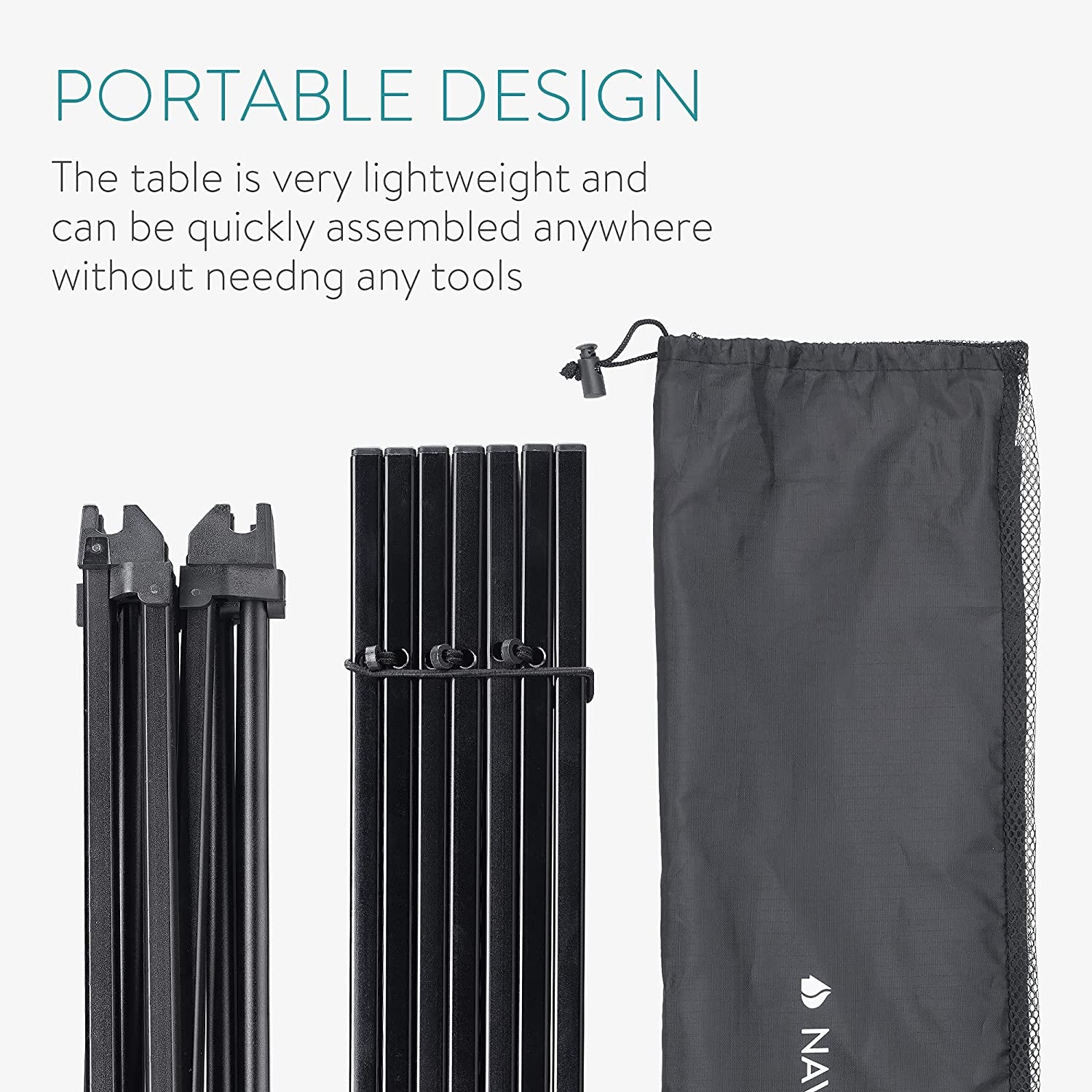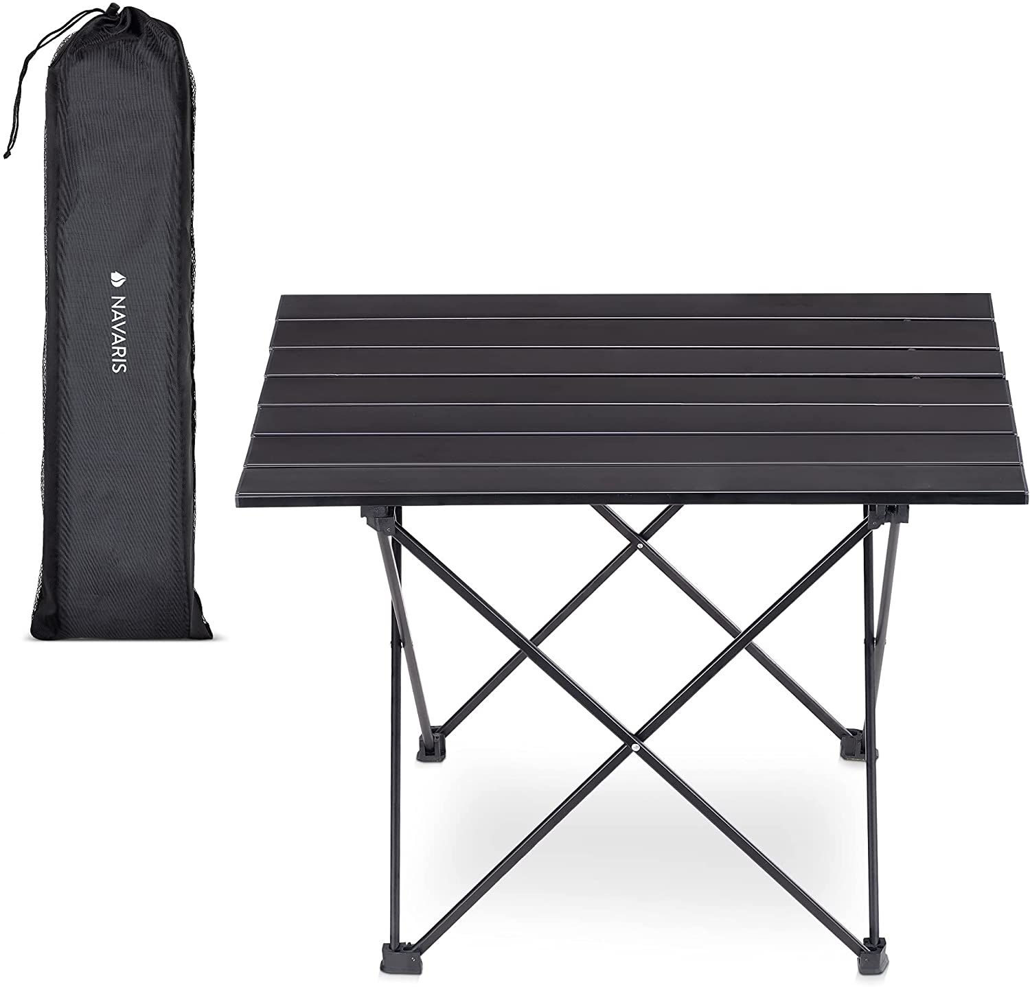 Το φορητό τραπέζι αλουμινίου από την Navaris σε μαύρο χρώμα εντυπωσιάζει με το βάρος του (1,28 kg) και το πολύ μικρό μέγεθος συσκευασίας. Είναι ένα μικρό υπαίθριο τραπέζι που συναρμολογείται εύκολα χωρίς εργαλεία.