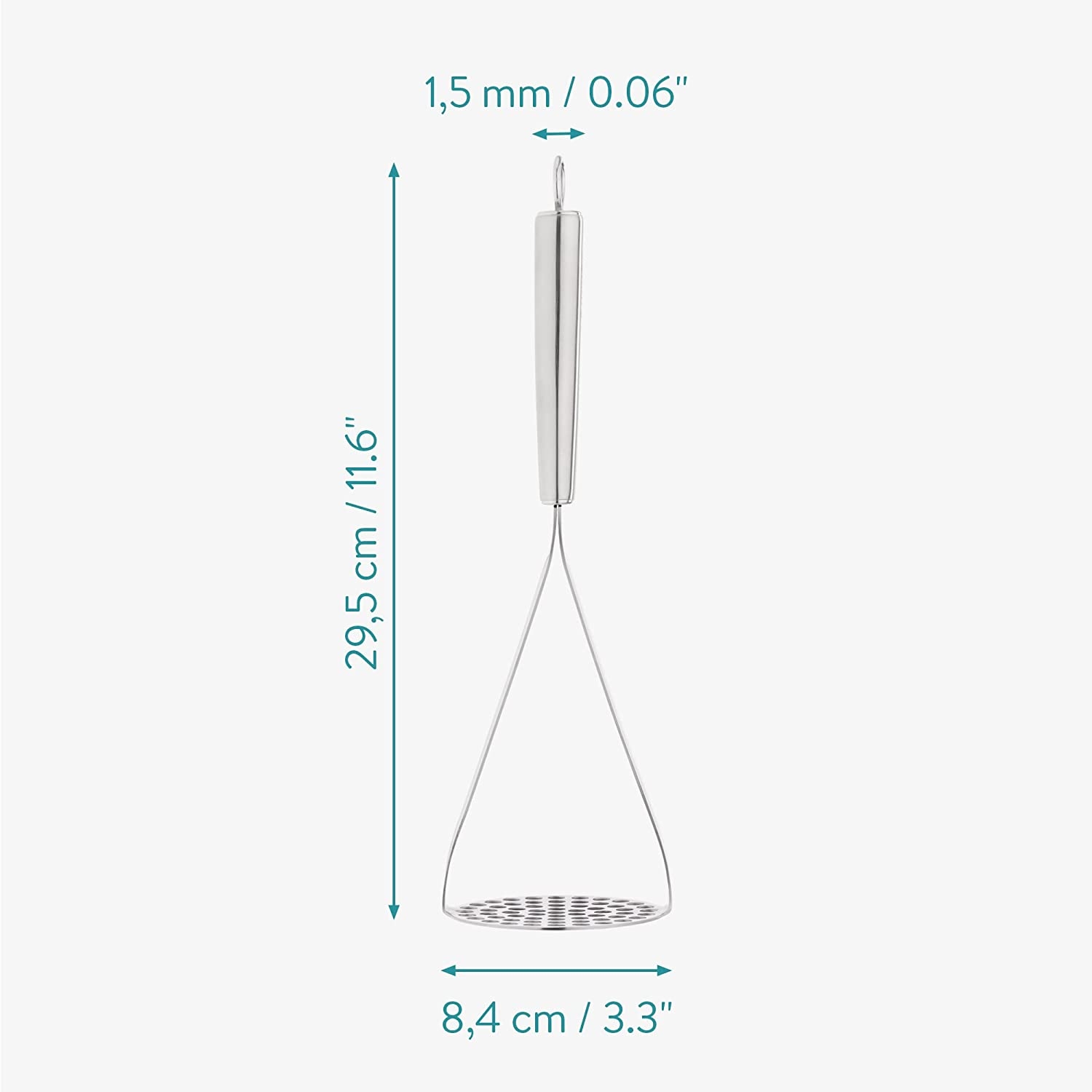 Είναι ένα πραγματικά πολυχρηστικό Kitchen Gadget, το οποίο μπορεί να χρησιμοποιηθεί για πολλά φαγητά και πιάτα. Η μακριά αντιολισθητική λαβή του, το καθιστά ιδιαίτερα άνετο στο χειρισμό, ώστε να φτιάξετε ένα υπέροχο πουρέ. Επίσης σας προσφέρει εύκολο καθαρισμό καθώς πλένεται και στο πλυντήριο πιάτων.