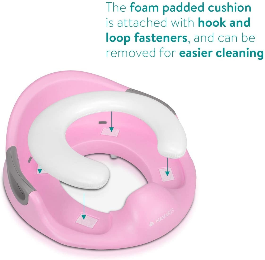 Με το μαλακό μαξιλάρι και τις λαβές σε κάθε πλευρά, το παιδί σας θα αφιερώνει όσο χρόνο χρειάζεται στην τουαλέτα, καθώς θα κάθετε άνετα και με ασφάλεια. Υποστηρίξτε το παιδί σας να μάθει την καλή υγιεινή με αυτό το γιογιο της Navaris.