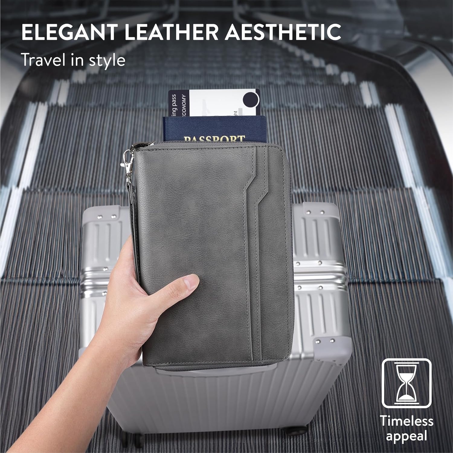 Οργανώστε τα ταξίδια σας με ασφάλεια, άνεση και στυλ, με το αντικλεπτικό ταξιδιωτικό πορτοφόλι PU Family Passport Holder της Navaris, το απόλυτο αξεσουάρ που συνδυάζει κομψότητα και πρακτικότητα. Προσφέρει κορυφαία προστασία με την προηγμένη τεχνολογία RFID, προστατεύοντας τις ευαίσθητες πληροφορίες σας από ανεπιθύμητες σαρώσεις, ενώ διατηρεί τα πάντα οργανωμένα και εύκολα προσβάσιμα.