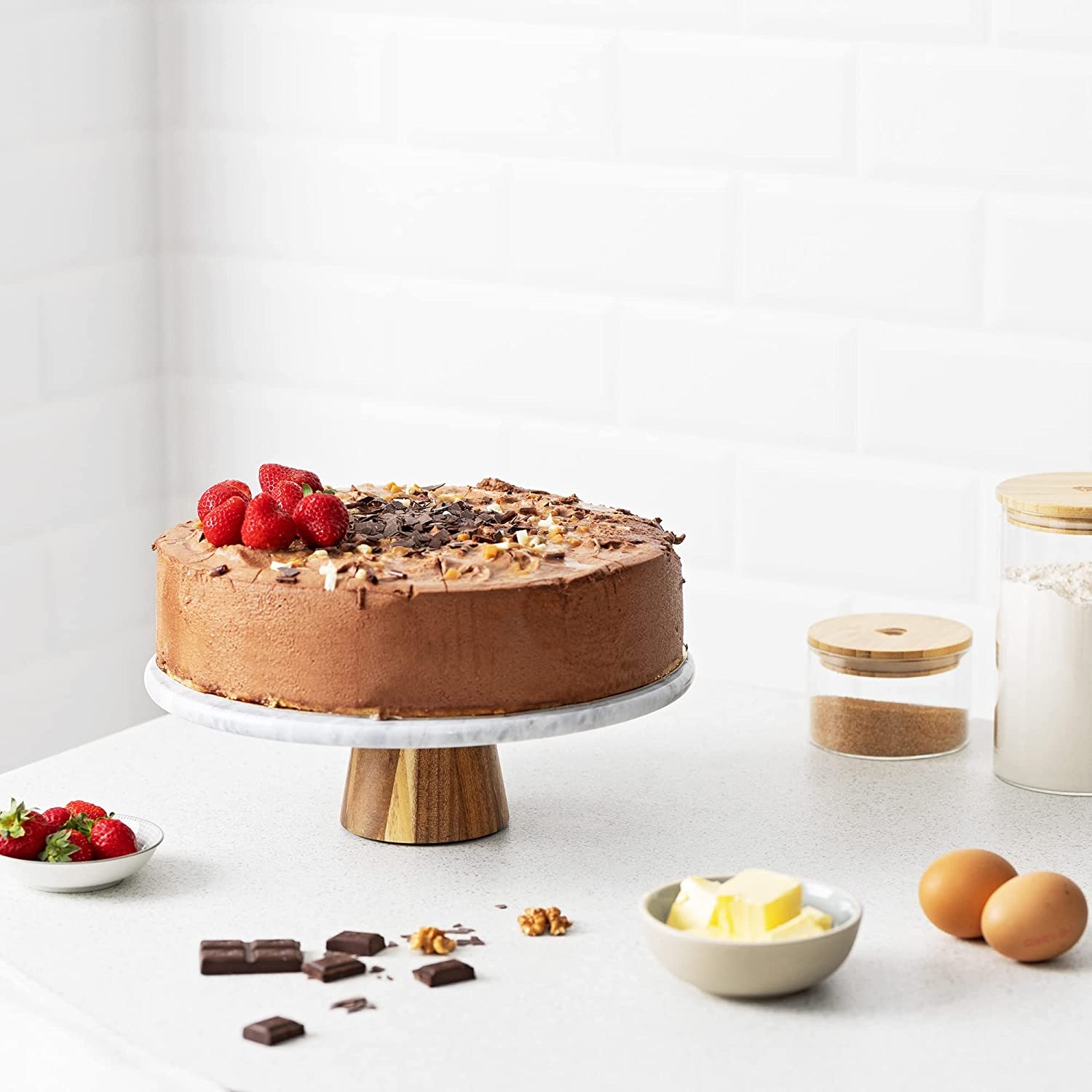 Η προετοιμασία μιας λαχταριστής τούρτας ή το σερβίρισμα ενός κέικ θα γίνει ακόμα πιο διασκεδαστικό και εύκολο με αυτή την περιστρεφόμενη βάση της Navaris! Η μαρμάρινη βάση περιστρέφεται κατά 360 μοίρες και σε συνδυασμό με το ξύλο ακακίας, θα προσθέσουν μία απαράμιλλη ομορφιά στην κουζίνα σας!