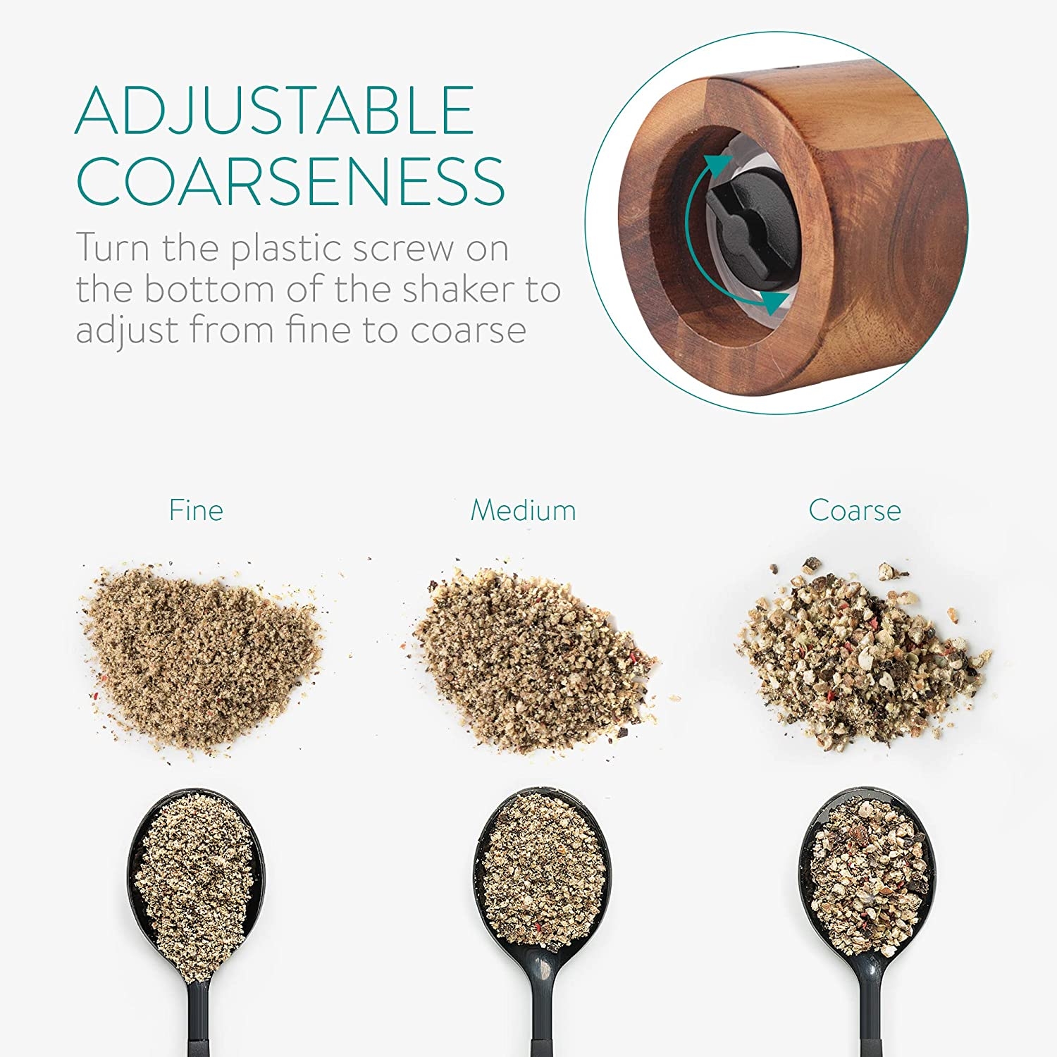Αυτό το σετ είναι απαραίτητο για κάθε κουζίνα, εστιατόριο, μπάρμπεκιου ή πικνίκ. Αποτελείται από ένα κομψό ξύλινο σχέδιο κατάλληλο για κάθε χρήση στην κουζίνα ή στο τραπέζι. Γυρίστε την πλαστική βίδα στο κάτω μέρος του μύλου και ρυθμίστε το πάχος που θέλετε να αλέσετε σε λεπτό, μεσαίο και χοντρό.
