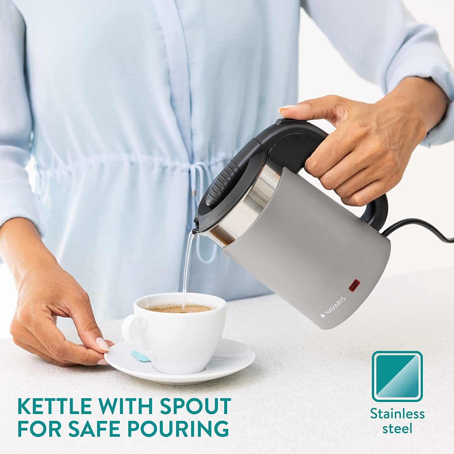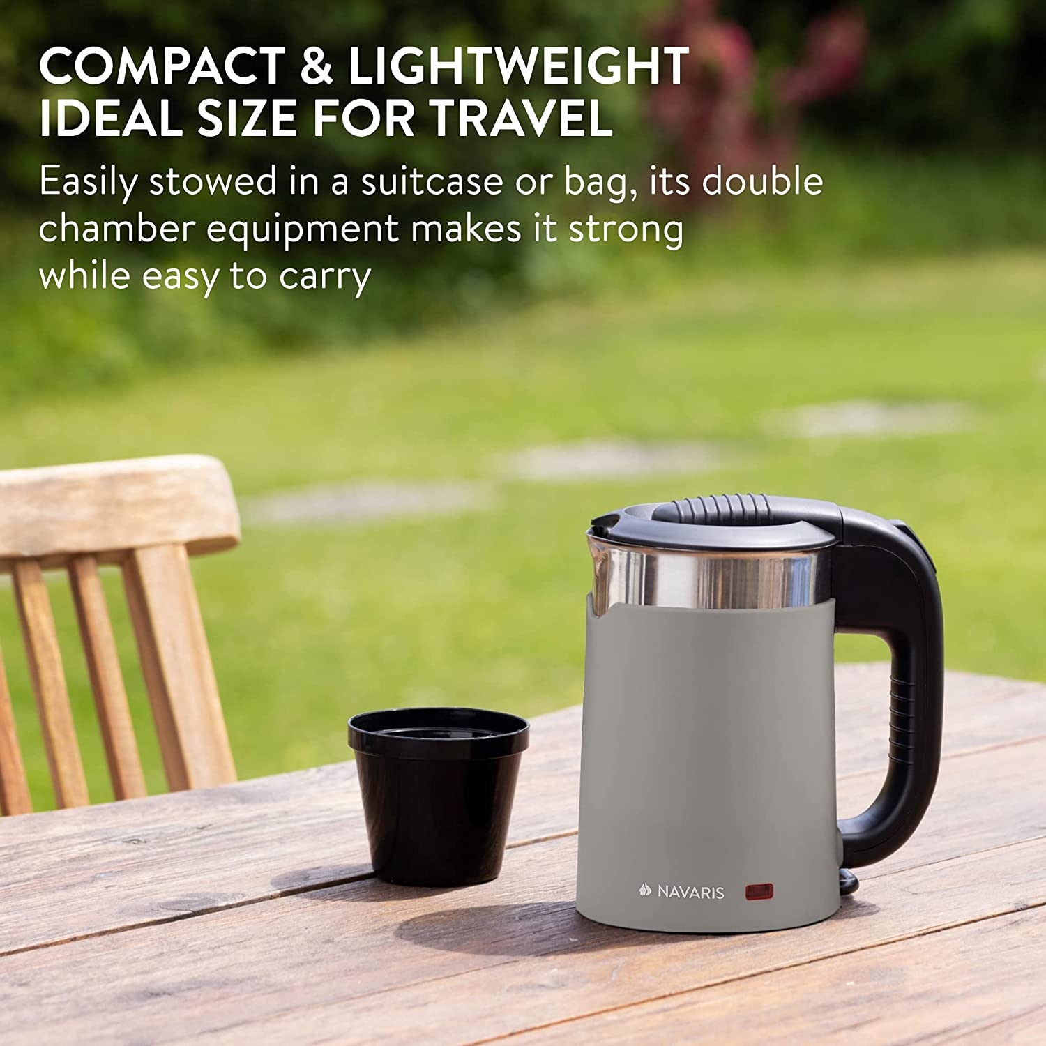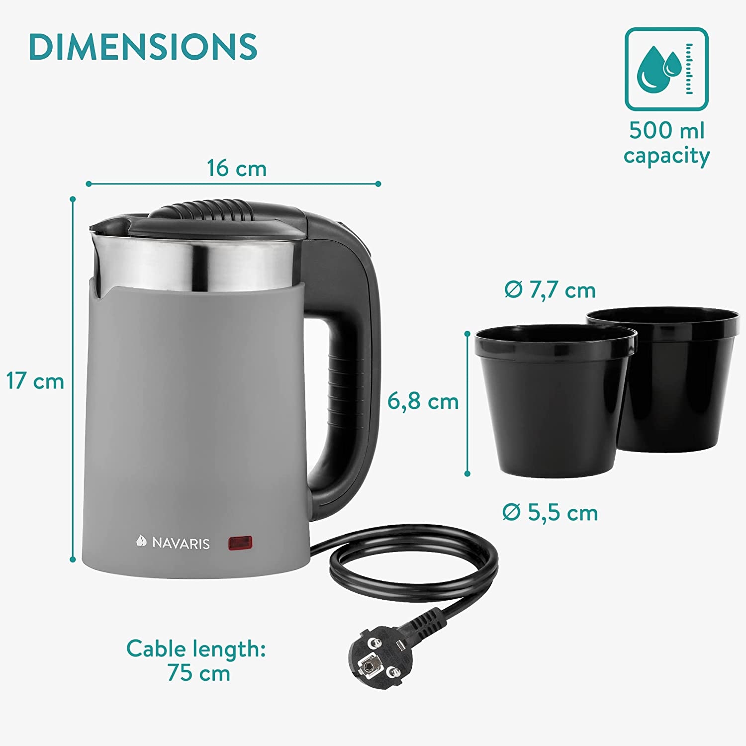 Με αυτό το μικρό φορητό βραστήρα από ανοξείδωτο ατσάλι της Navaris θα έχετε βραστό νερό όπου και αν βρίσκεστε! Εσείς απλώς γεμίστε με νερό, συνδέστε το στο ρεύμα, βάλτε το καπάκι και ανάψτε τον βραστήρα.