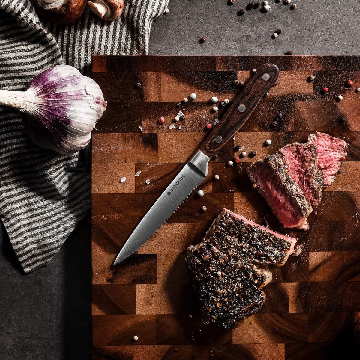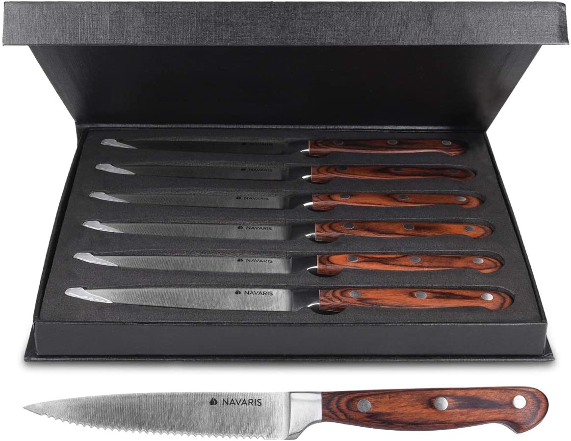 Τα κλασικά μαχαίρια για μπριζόλες της Navaris διαθέτουν λεία και κομψή λαβή από ξύλο pakkawood, ενώ ταυτόχρονα έχουν ένα όμορφο και λειτουργικό σχέδιο. Είναι ένα must-have εργαλείο στην κουζίνα σας και για κάθε λάτρη του κρέατος.
