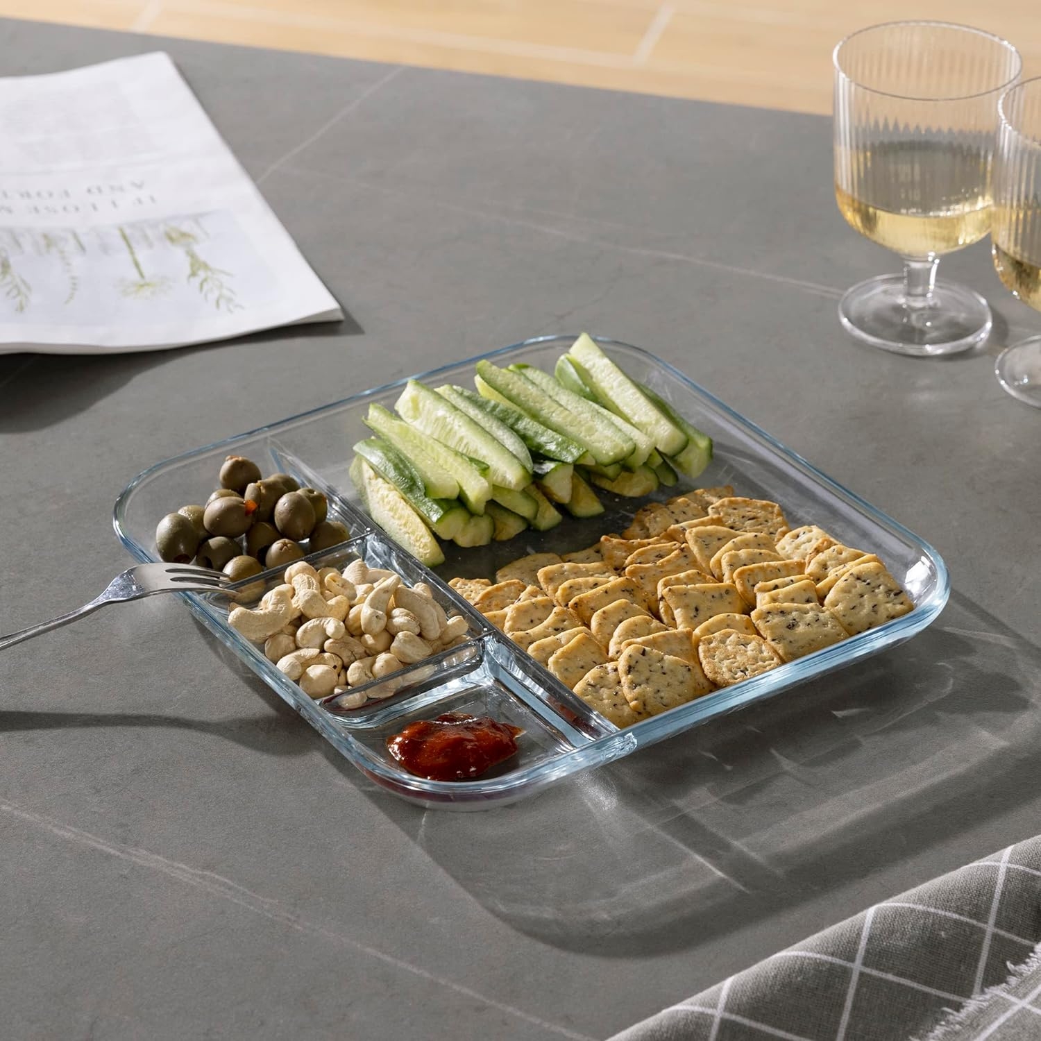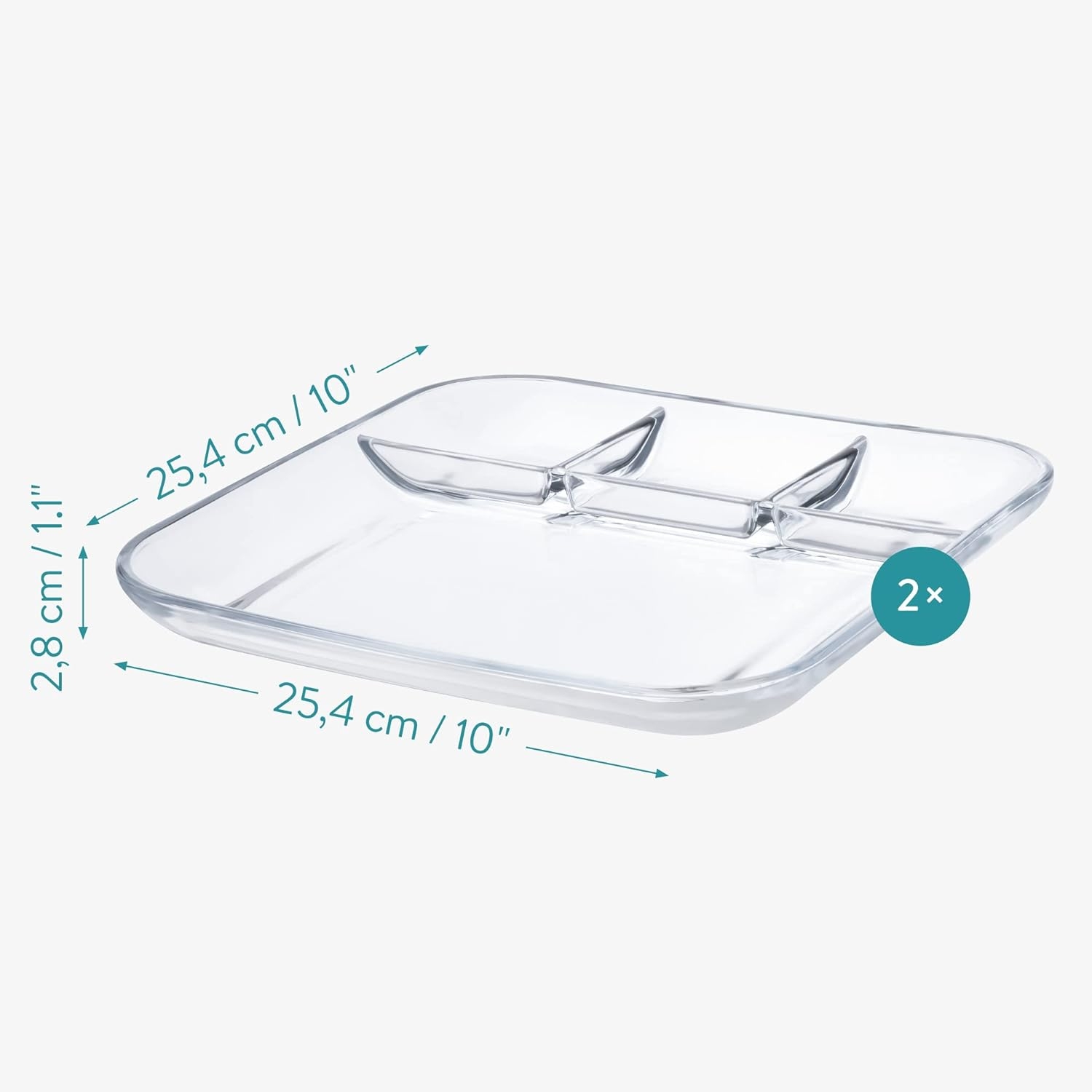 Οι πιατέλες είναι κατασκευασμένες από ανθεκτικό σκληρυμένο γυαλί, το οποίο είναι ασφαλές για χρήση στο φούρνο μικροκυμάτων, στο πλυντήριο πιάτων και στο ψυγείο. Έχει το ιδανικό μέγεθος, καθώς έχεις τετράγωνες διαστάσεις 25.4cm και ύψος 2.8cm. Τα γυάλινα πιάτα θα σας βοηθήσουν να έχετε μία νόστιμη παρουσίαση στο τραπέζι σας, ενώ το φαγητό σας δεν θα ανακατευτεί ή μουσκευτεί από τις συνοδευτικές σάλτσες.