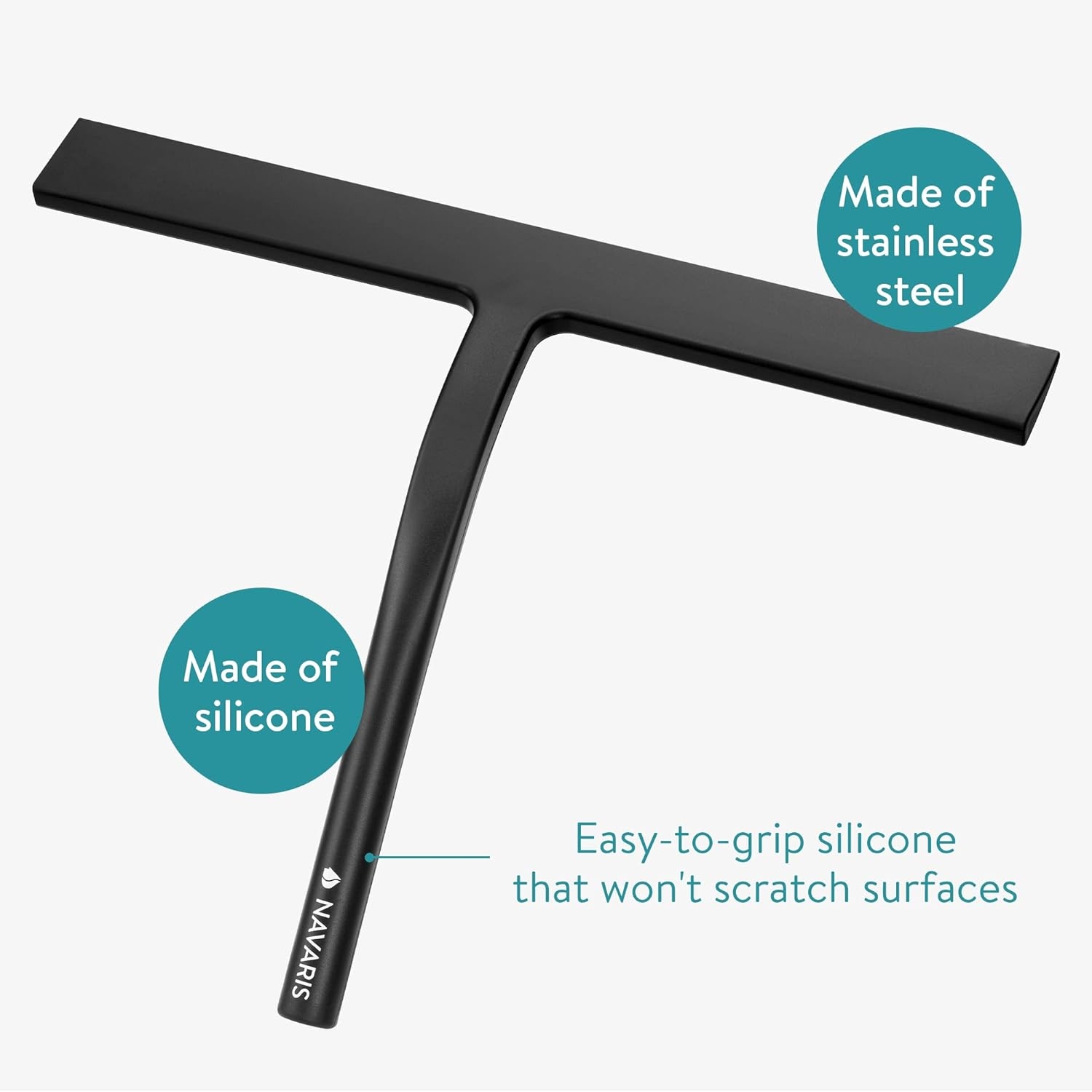 Ανακαλύψτε τη νέα εμπειρία καθαρισμού με το μάκτρο τζαμιών της Navaris, το οποίο είναι ιδανικό για τις γυάλινες πόρτες και επιφάνειες μπάνιου. Με διαστάσεις 28cm x 22cm, αυτό το κομψό μάκτρο διατίθενται σε ένα διαχρονικό μαύρο χρώμα που ταιριάζει σε κάθε μοντέρνο μπάνιο.