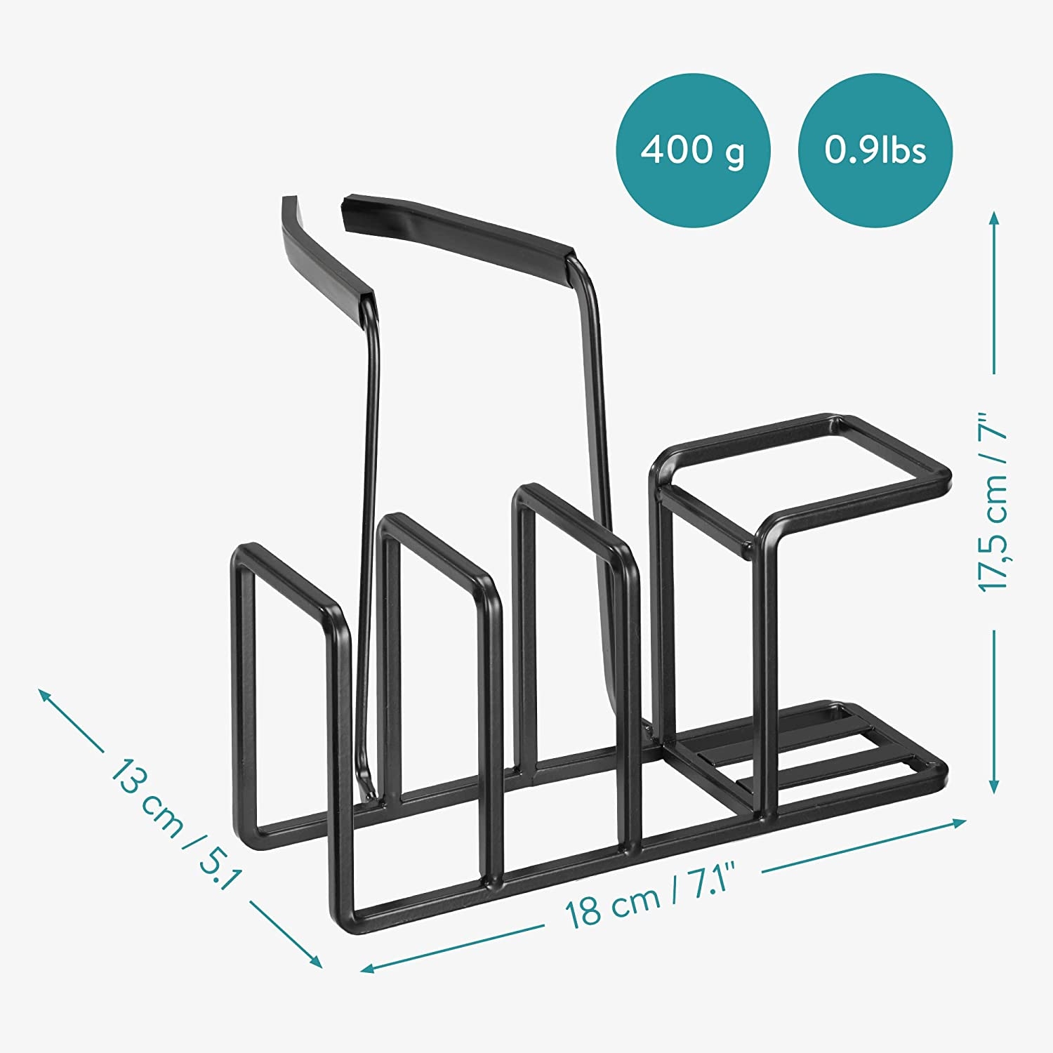 Είναι σχεδιασμένο με γάντζους / στηρίγματα σιλικόνης, που βοηθούν στην αποφυγή γρατσουνιών στην επιφάνεια που στηρίζονται και διατηρούν έναν περιποιημένο χώρο στη κουζίνα σας. Αυτή η θήκη προσφέρει άφθονο χώρο αποθήκευσης, χωρίς να καταλαμβάνει πολύ χώρο στην κουζίνα σας.