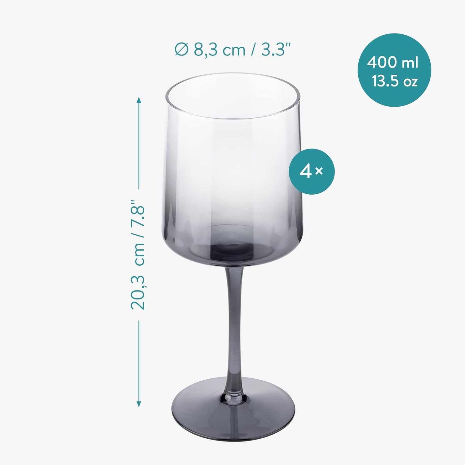 Δώστε ένα υπέροχο στυλ στο τραπέζι σας, με αυτό το σετ από φιμέ γυάλινα ποτήρια κρασιού της Navaris. Το σετ διαθέτει έναν εντυπωσιακό σχεδιασμό που ξεχωρίζει από τα κοινά ποτήρια, ώστε να φαίνονται υπέροχα τοποθετημένα σε ένα μπαρ ή όταν θα έχετε τραπέζι σε μια ειδική περίσταση ή το καθημερινό σας δείπνο.