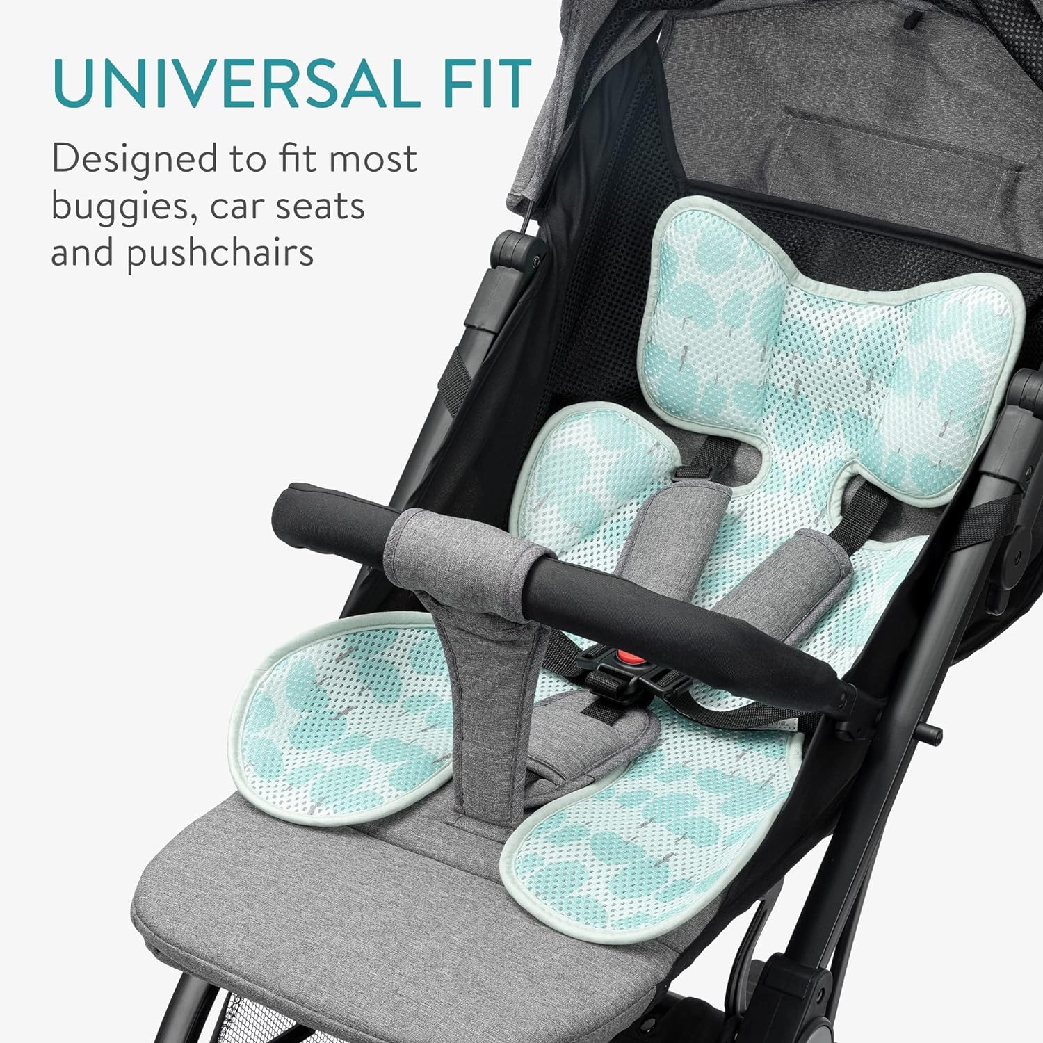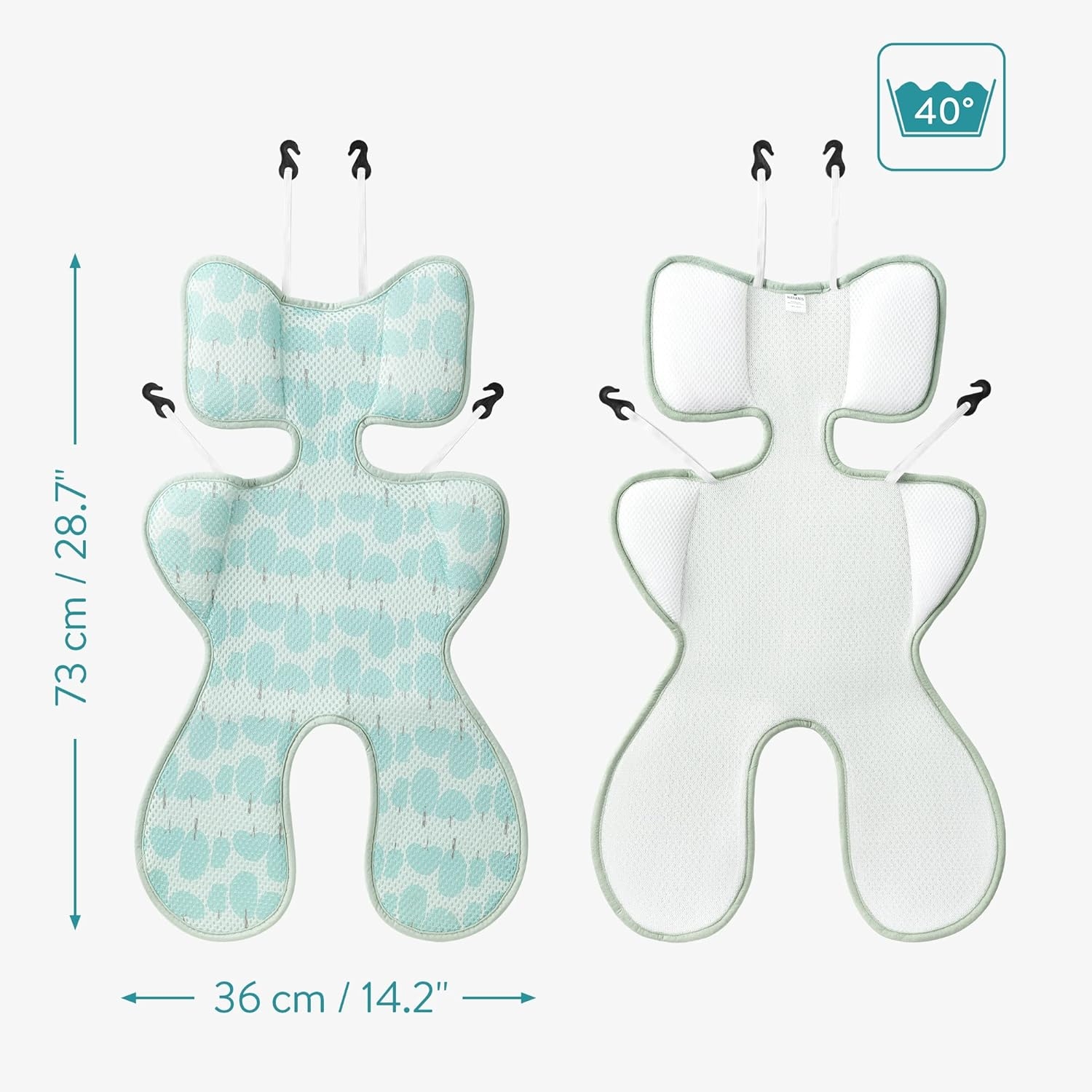 Είναι επίσης εξαιρετικά πρακτικό, με εσοχές για ζώνες ασφαλείας τριών και πέντε σημείων, ταιριάζοντας έτσι στα περισσότερα τυπικά καροτσάκια και καθίσματα αυτοκινήτου. Όταν χρειάζεται καθάρισμα, απλά αφαιρέστε το και πλύνετε το στο πλυντήριο στους 40°C, εξασφαλίζοντας έτσι ότι παραμένει πάντα καθαρό και φρέσκο για το μωρό σας.