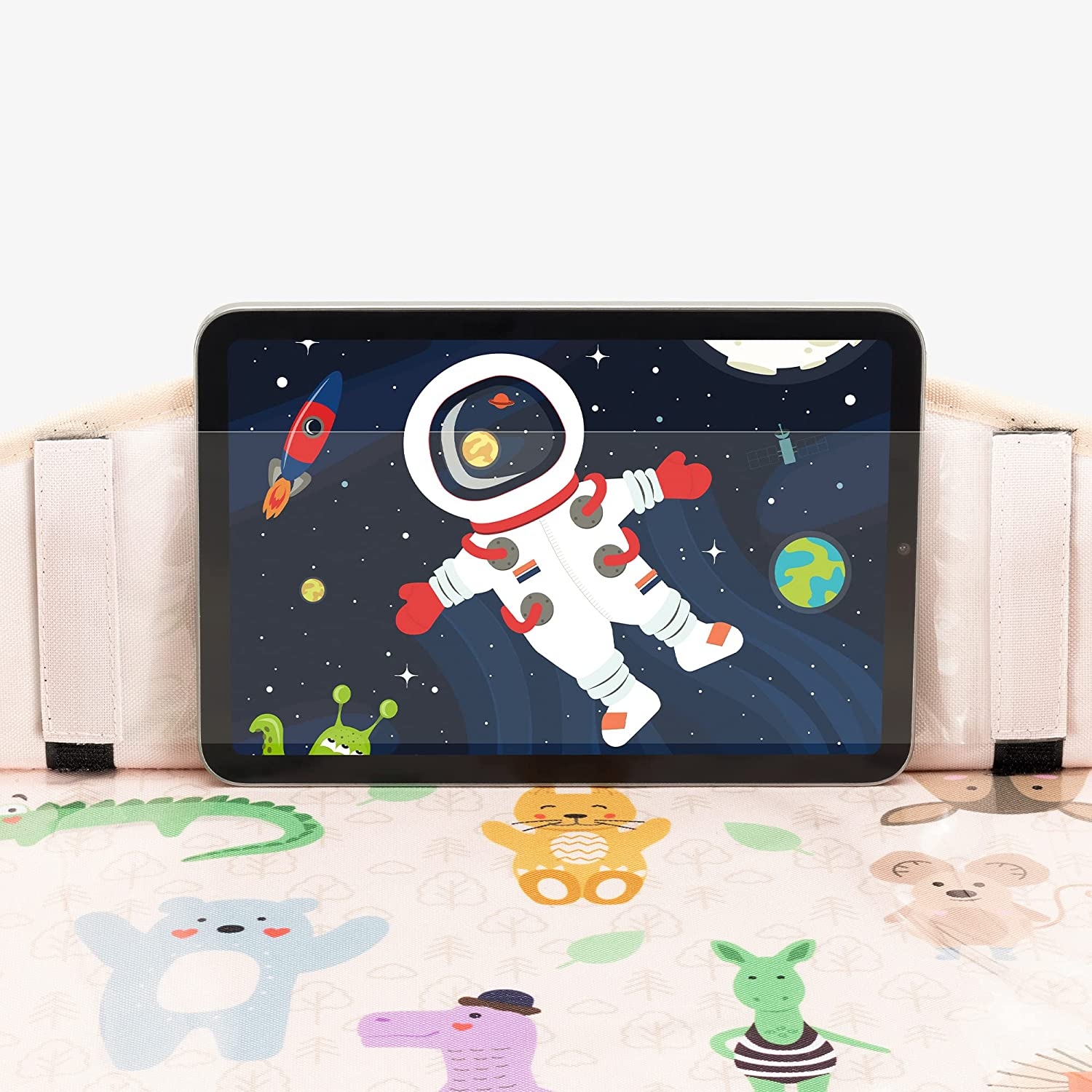 Διαθέτει ρυθμιζόμενο ιμάντα και χάρη στην αναδιπλούμενη σχεδίαση, μπορεί να αποθηκευτεί όταν δεν χρησιμοποιείται. Με το διάφανο στήριγμα για tablet, τα παιδιά σας μπορούν να παρακολουθούν ταινίες σε μεγάλα ταξίδια.