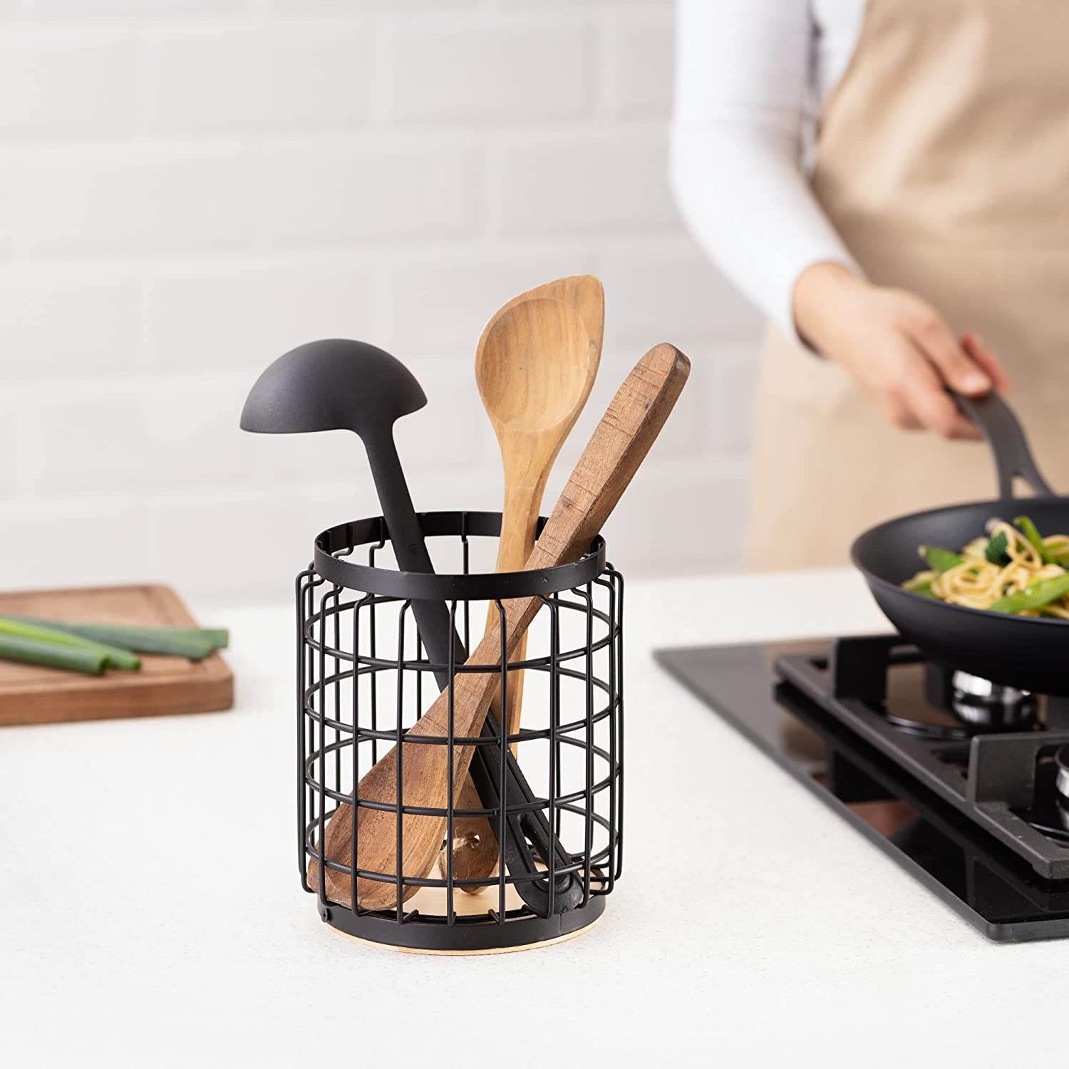 Κρατήστε κοντά σας τα αγαπημένα σας μαγειρικά σκεύη, τακτοποιήστε το συρτάρι σας και αποθηκεύστε κουτάλες ή σπάτουλες στη θήκη και βάλτε τη σε έναν πάγκο ή σε στο τραπέζι της κουζίνας σας.