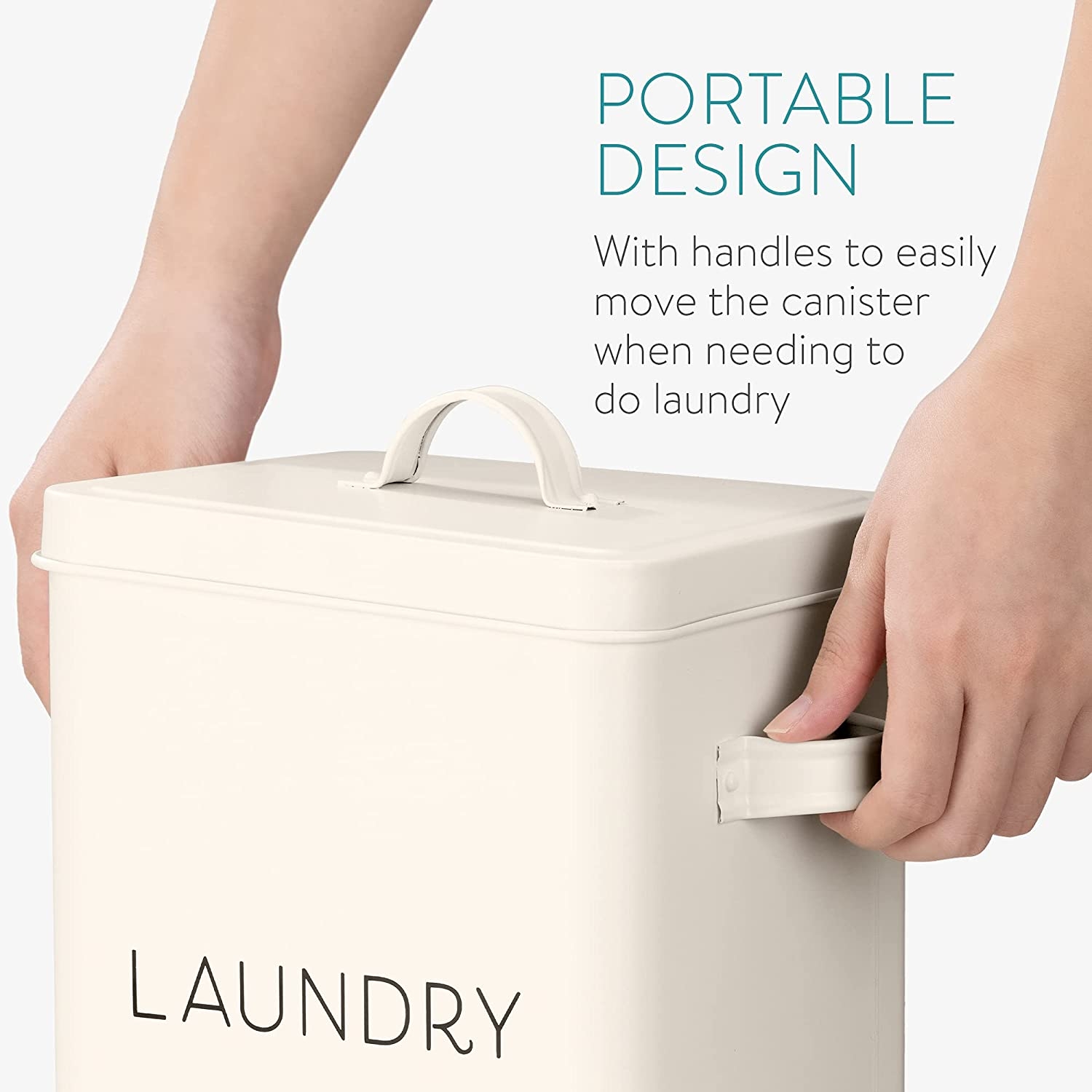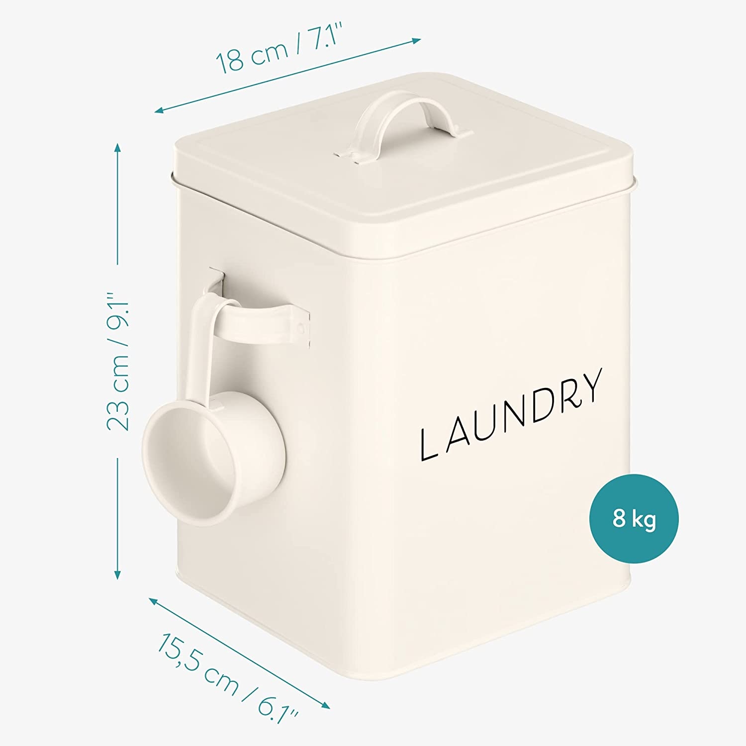 Το κουτί είναι κατασκευασμένο από ψευδάργυρο, σίδηρο και επίστρωση πούδρας και έχει ειδικές λαβές στο πλάι οι οποίες σας επιτρέπουν να το μετακινείτε εύκολα. Με χωρητικότητα έως 8 κιλά, γεμίστε το με την απορρυπαντική σκόνη ή τις ταμπλέτες που χρησιμοποιείτε και αποθηκεύστε το δίπλα στο πλυντήριό σας για μεγαλύτερη χρηστικότητα.