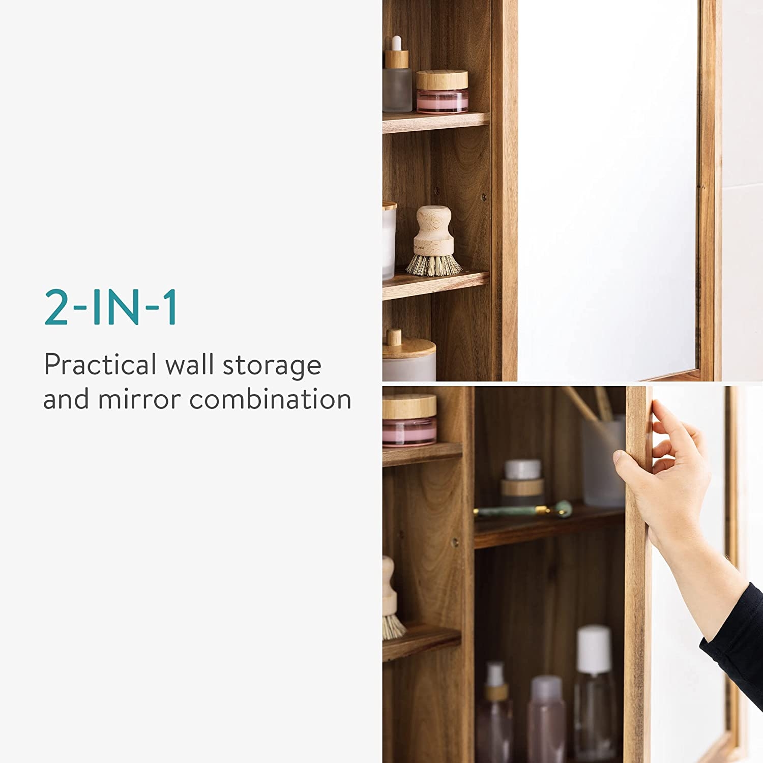 Navaris Wood Bathroom Cabinet with Mirror - Ντουλάπι Τοίχου / Έπιπλο Μπάνιου με Καθρέπτη από Ξύλο Ακακίας - 60.5 x 60 x 14 cm - Brown (57961.01)