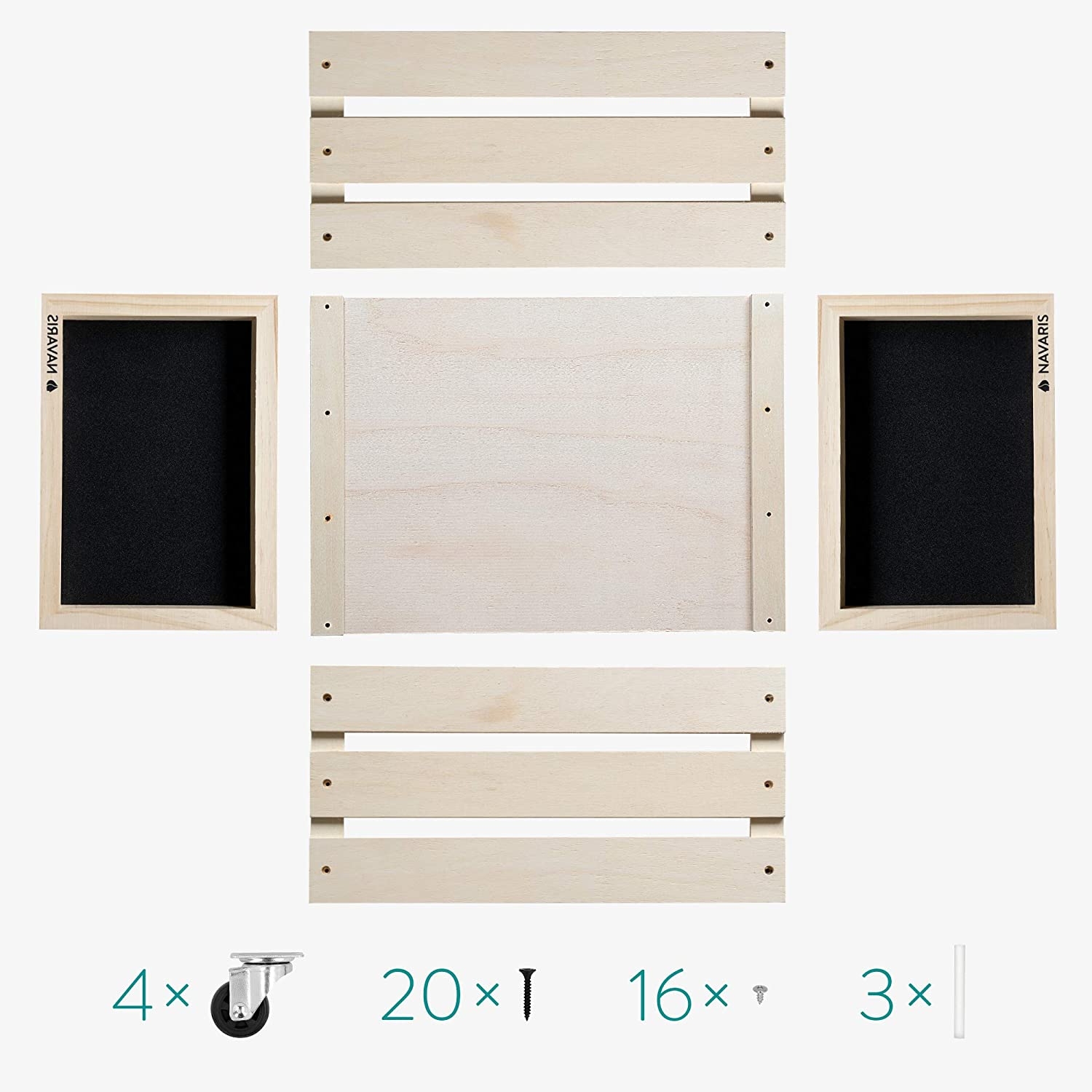 Σημείωση: Το κουτί χρειάζεται συναρμολόγηση. Στην συσκευασία περιλαμβάνονται 20 μεγάλες βίδες, 16 μικρές βίδες, 4 ρόδες για την συναρμολόγησή του και 3 κιμωλίες.