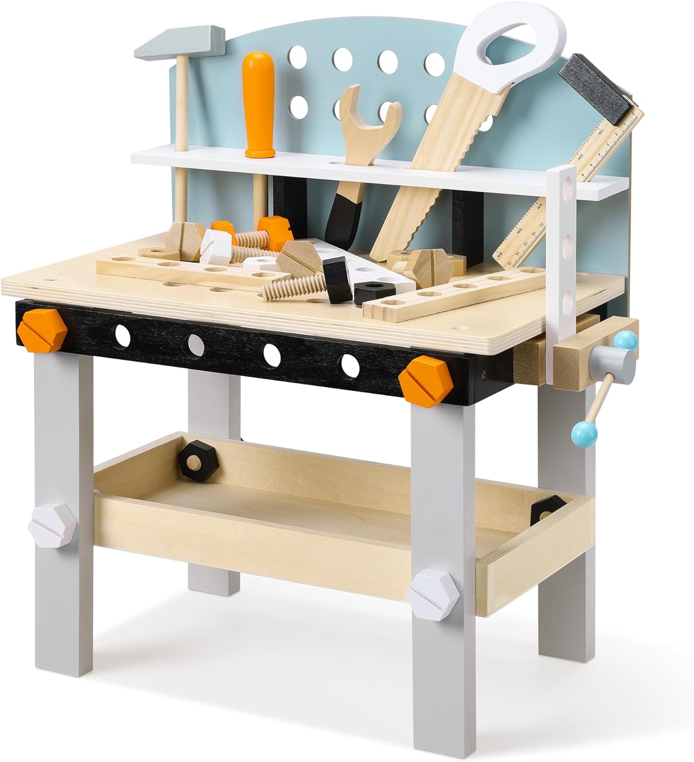 Με κάθε λεπτομέρεια σχεδιασμένη με ασφάλεια για τα μικρά χέρια των παιδιών, ο πάγκος εργασίας προσφέρει ένα ασφαλές περιβάλλον για τη δημιουργική ανάπτυξη του παιδιού σας. Με μεγάλο αποθηκευτικό χώρο κάτω από την επιφάνεια εργασίας και επιλογή κρεμάσματος για εργαλεία, εξασφαλίζει ότι τα εργαλεία θα είναι πάντα οργανωμένα και έτοιμα για παιχνίδι.
