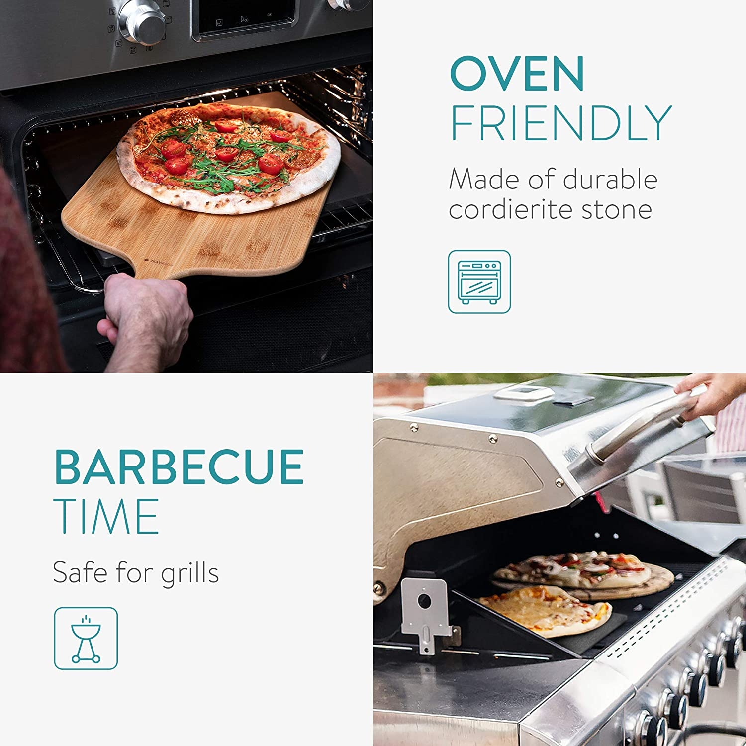 Γίνετε επαγγελματίας ψησίματος πίτσας με την υψηλής ποιότητας πέτρινη πλάκα πίτσας από την Navaris. Η πίτσα ταιριάζει στην σχάρα αλλά και στον φούρνο στην κουζίνα. Απολαύστε μια πραγματική ιταλική γεύση πίτσας από φούρνο τούβλου!