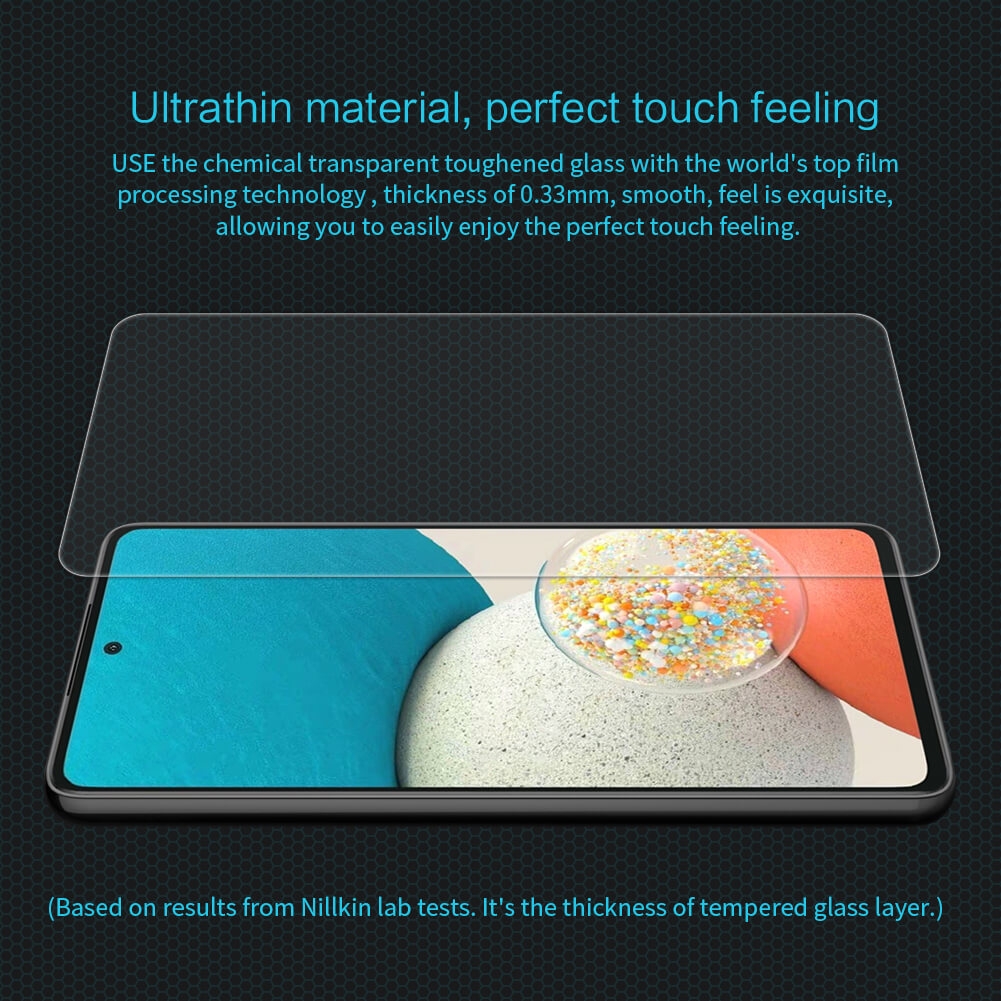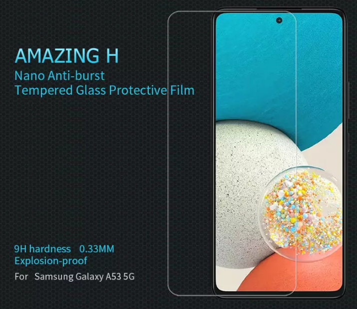 To αντιχαρακτικό αντιεκρηκτικό γυαλί οθόνης Amazing H της Nillkin, είναι ειδικά σχεδιασμένο για το αγαπημένο σας Samsung Galaxy A53 5G και είναι κατασκευασμένο από επιλεγμένο ιαπωνικό γυαλί AGC, χρησιμοποιώντας τη νανοτεχνολογία Harves, ώστε να σας προσφέρει εκπληκτικές προστατευτικές λειτουργίες.