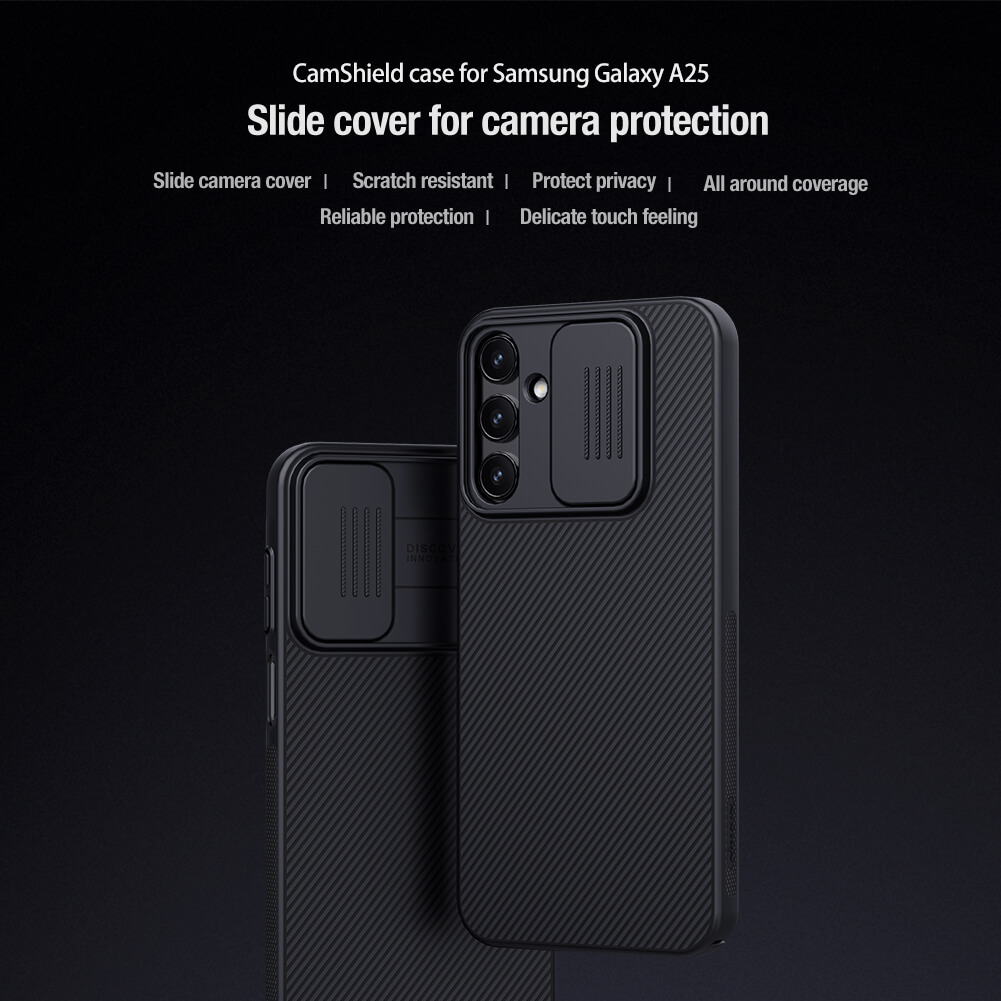Η θήκη CamShield της Nillkin, είναι μία εξαιρετικά κομψή θήκη για το αγαπημένο σας Samsung Galaxy A25, παρέχει εκπληκτική προστασία από γρατζουνιές, σκόνη και πτώσεις και σας προσφέρει την μέγιστη προστασία που χρειάζεστε.