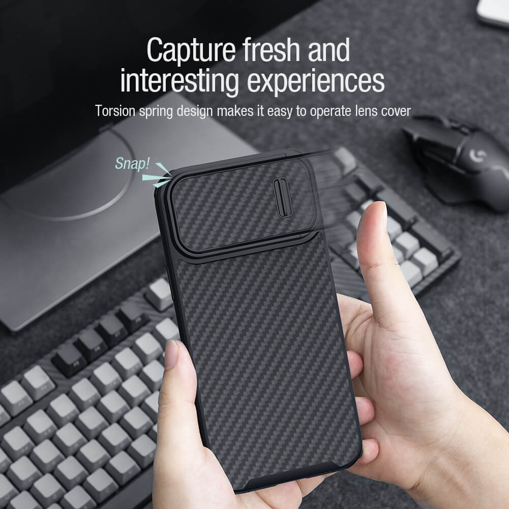 Η θήκη Synthetic Fiber S της Nillkin, είναι μία θήκη ειδικά σχεδιασμένη για το αγαπημένο σας iPhone 14 Pro Max, η οποία παρέχει εκπληκτική προστασία από γρατζουνιές, σκόνη και πτώσεις και σας προσφέρει την μέγιστη προστασία που χρειάζεστε. Διαθέτει μία Premium επίστρωση από ανθρακονήματα, σχεδιασμένη με την τεχνολογία θερμής συμπίεσης.