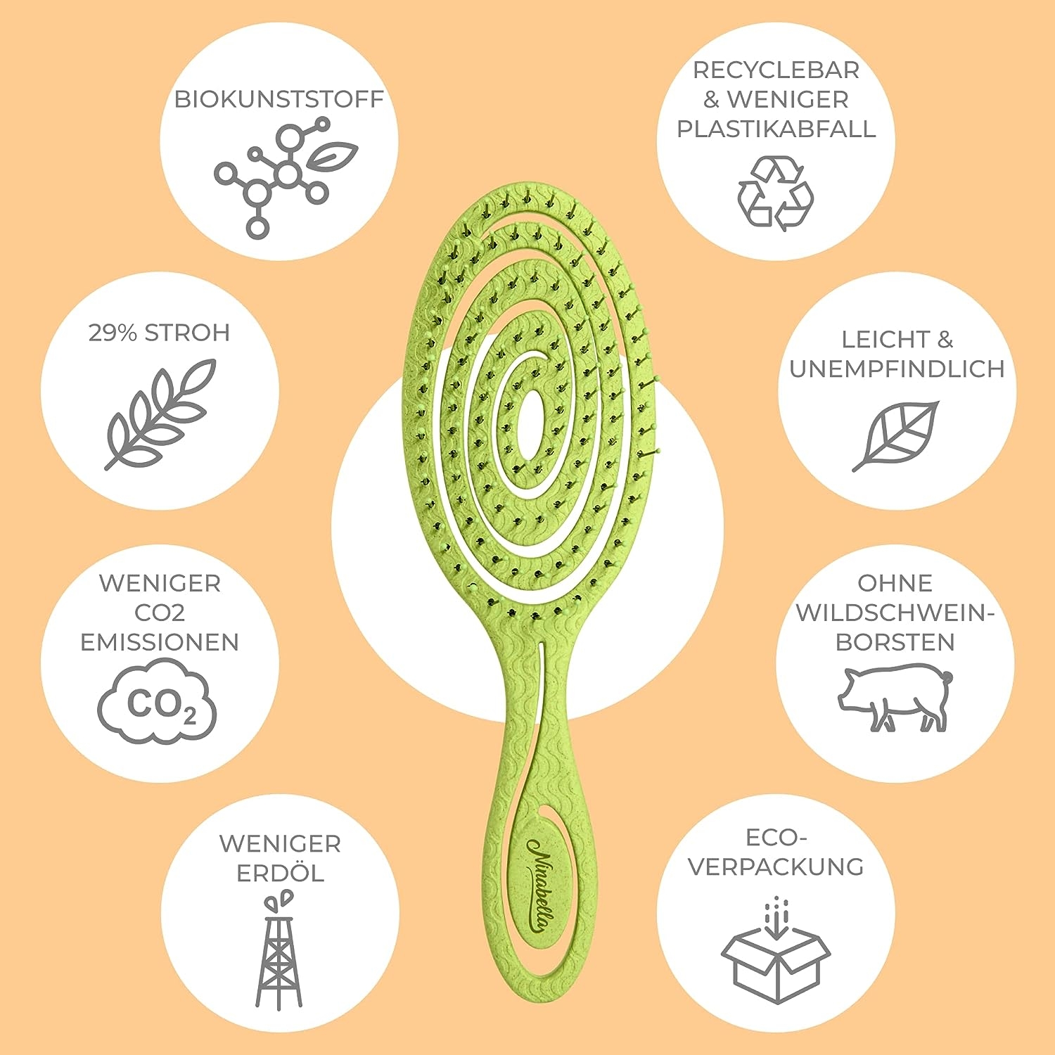 Είναι μία βιολογική βούρτσα μαλλιών κατασκευασμένη από βιοπλαστικό, συλλεγμένο στη θάλασσα, από στάχυ και από ανακυκλώσιμα καλαμάκια, έτσι η βούρτσα δεν έχει λαστιχένια επίστρωση, είναι 100% vegan και δεν έχει καθόλου τρίχες από ζώα, επομένως εκπέμπει λιγότερο διοξείδιο του άνθρακα κατά την παραγωγή της.