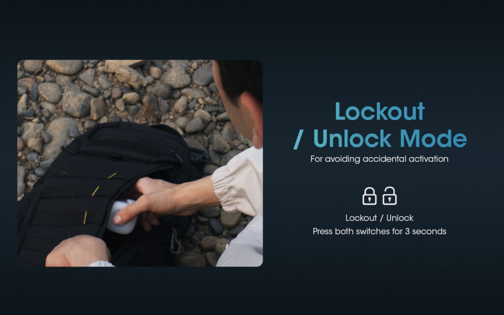 Τέλος, χάρη στη λειτουργία κλειδώματος και ξεκλειδώματος, αποφεύγεται η ατυχής ενεργοποίηση κατά την μεταφορά του, αυτό επιτυγχάνεται με το πάτημα και των δύο διακοπτών ταυτόχρονα για 3 δευτερόλεπτα. Διαθέτει εξαιρετική και αξιόπιστη κατασκευή, καθώς είναι κατασκευασμένο από ανθεκτικά ABS και PC υλικά. Είναι στιβαρό, ανθεκτικό στην πίεση, ανθεκτικό στις πτώσεις έως και από 1 μέτρο και διαθέτει βαθμολογία αδιαβροχότητας IP44.