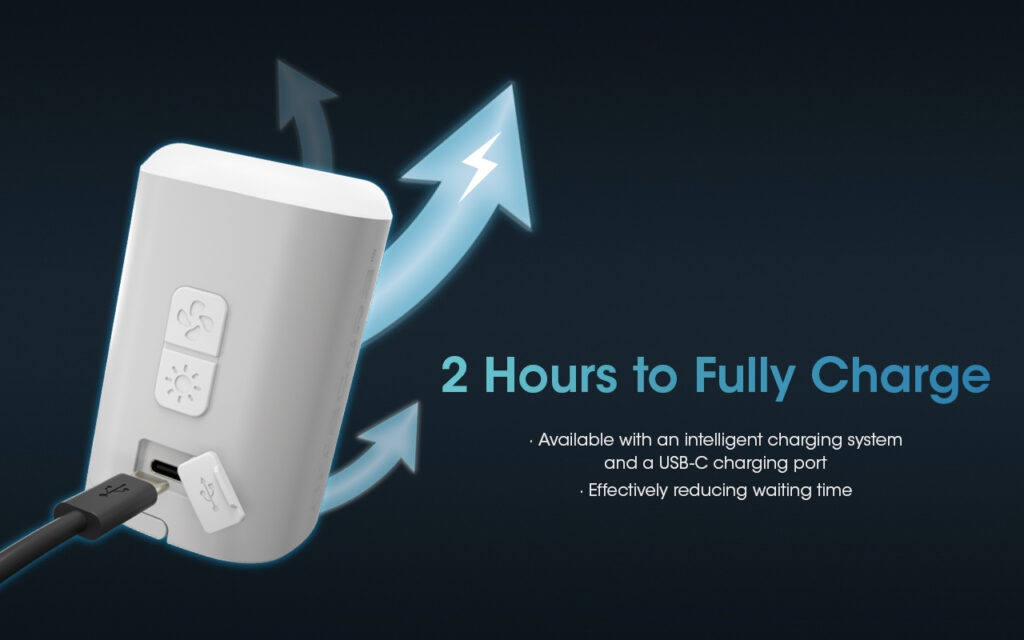 Για την επαναφόρτιση του είναι αρκετές 2 ώρες, καθώς ενσωματώνει ένα έξυπνο σύστημα φόρτισης και μία θύρα φόρτισης Type-C, η οποία μειώνει αποτελεσματικά τον χρόνο αναμονής. Διαθέτει ενδεικτική λυχνία ισχύος, με της ενδείξεις όπως, πράσινο χρώμα που σημαίνει ότι η ενέργεια είναι πάνω από 50%, μπλέ χρώμα όπου η ενέργεια είναι ίση ή λιγότερη από 50% και κόκκινο χρώμα όπου η ενέργεια είναι λιγότερη από 10%.