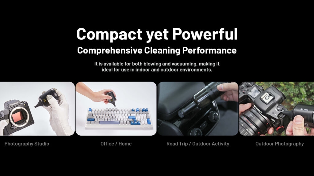 Ο φυσητήρας είναι μία επαγγελματική και ολοκληρωμένη συσκευή η οποία προορίζεται για τον καθαρισμό και την περιποίηση του φωτογραφικού και κινηματογραφικού εξοπλισμού σας, πληκτρολόγια, αλλά και κάποια εσωτερικά σημεία του αυτοκινήτου σας. Είναι ειδικά σχεδιασμένο με φίλτρο μεγάλη πυκνότητας, με πολύπλευρη είσοδο αέρα, ειδικά σχεδιασμένη για να μην προκαλείται δευτερεύουσα ζημιά στην επιφάνεια της συσκευής.