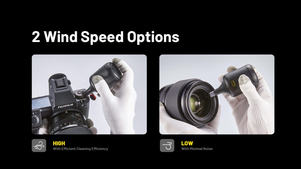 Επίσης, αυτός ο επαναφορτιζόμενος ηλεκτρονικός φυσητήρας, προσφέρει δύο ταχύτητες καθαρισμού, την υψηλή και την χαμηλή, ενώ διαθέτει δύο επιλογές καθαρισμού, το γρήγορο και τον σταθερό καθαρισμό. Στον γρήγορο καθαρισμό, για το ξεκίνημα πιέστε και κρατήστε πατημένο τον διακόπτη ενεργοποίησης και απελευθερώστε για απενεργοποίηση. Στον σταθερό καθαρισμό, για το ξεκίνημα πιέστε δύο φορές τον διακόπτη ενεργοποίησης και πιέστε παρατεταμένα τον ίδιο διακόπτη για απενεργοποίηση.