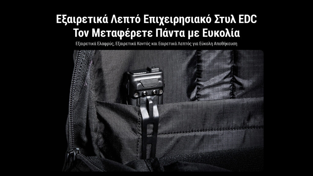 Ο EDC23 της Nitecore είναι ένας εξελιγμένος, εξαιρετικά λεπτός και ελαφρύς φακός LED που συνδυάζει την κορυφαία τεχνολογία φωτισμού με την υψηλή εργονομία και ανθεκτικότητα, ιδανικός για καθημερινή χρήση και επιχειρησιακές ανάγκες, με μέγιστη εμβέλεια 280 μέτρων, επιτυγχάνει εξαιρετική απόδοση στο σκοτάδι. Ο σχεδιασμός του είναι κομψός και συμπαγής, με μήκος μόλις 102,8 χιλιοστά και πάχος 13,5 χιλιοστά, καθιστώντας τον περίπου 27% μικρότερο από τους συμβατικούς φακούς compact.