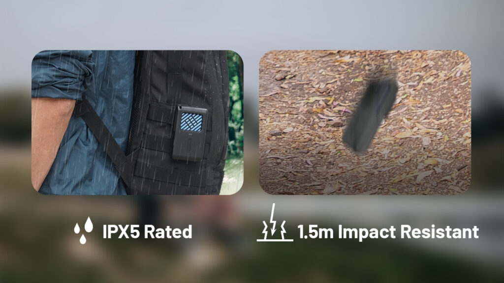 Τέλος, είναι ανθεκτικό στο ψιλόβροχο με βαθμολογία IPX5 και ανθεκτικό στις πτώσεις έως και από 1.5 μέτρα ύψος. Έχει την δυνατότητα να χρησιμοποιηθεί σε μία μεγάλη ποικιλία εξωτερικών δραστηριοτήτων, όπως πεζοπορία, κάμπινγκ, ταξίδι με αυτοκίνητο, περπάτημα, ψάρεμα, μαγείρεμα σε εξωτερικό χώρο και πολλές άλλες δραστηριότητες.