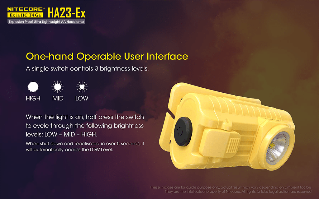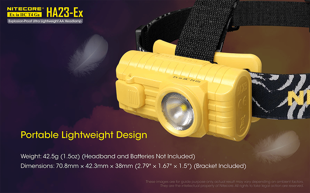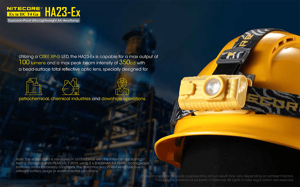 Ο αντιεκρηκτικός φακός κεφαλής LED HA23-Ex της Nitecore, είναι εξαιρετικά ελαφρύς και λειτουργεί με δύο μπαταρίες ΑΑ , οι οποίες περιλαμβάνονται, ενώ σας δίνει την δυνατότητα λειτουργίας με το ένα χέρι. Είναι κατασκευασμένος εξαρχής για ασφάλεια, με αντιεκρηκτική προστασία, ικανό για χρήση στις ζώνες 0 / 1 / 2 Ex ia IIC T6 Ga.