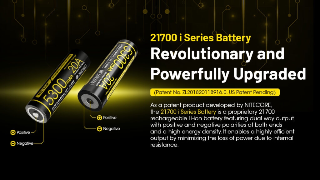 Η διπλή πολικότητα σε κάθε πλευρά των μπαταριών 21700 της σειράς “i”, έσπασε τους περιορισμούς που δημιουργούνταν για την επαφή της κεφαλής με την ουρά του φακού, έτσι ώστε να μπορεί να μειωθεί το μέγεθος και το βάρος του. Έτσι η εσωτερική αντίσταση έχει μειωθεί θεαματικά και προσφέρει άμεση μετατροπή της ενέργειας για την τροφοδοσία της συσκευής. Εξαιτίας των πρωτοποριακών τεχνικών και τεχνολογίας, αυτό μπορεί να φέρει περισσότερες ευκαιρίες στον σχεδιασμό των φακών Nitecore.
