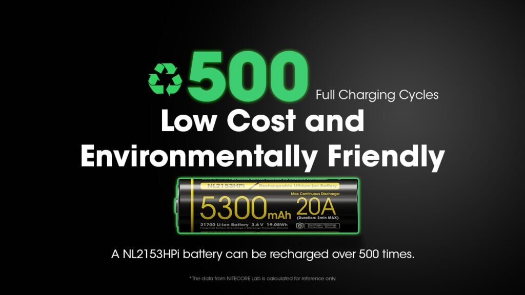 Η NL2153HPi της Nitecore, είναι μία επαναφορτιζόμενη μπαταρία 21700 της σειράς “i”, η οποία διαθέτει χωρητικότητα 5300mAh, ρεύμα συνεχούς αποφόρτισης 20Α, εσωτερικά χαρακτηριστικά ασφάλειας και απαλλαγμένη από υδράργυρο και μόλυβδο.