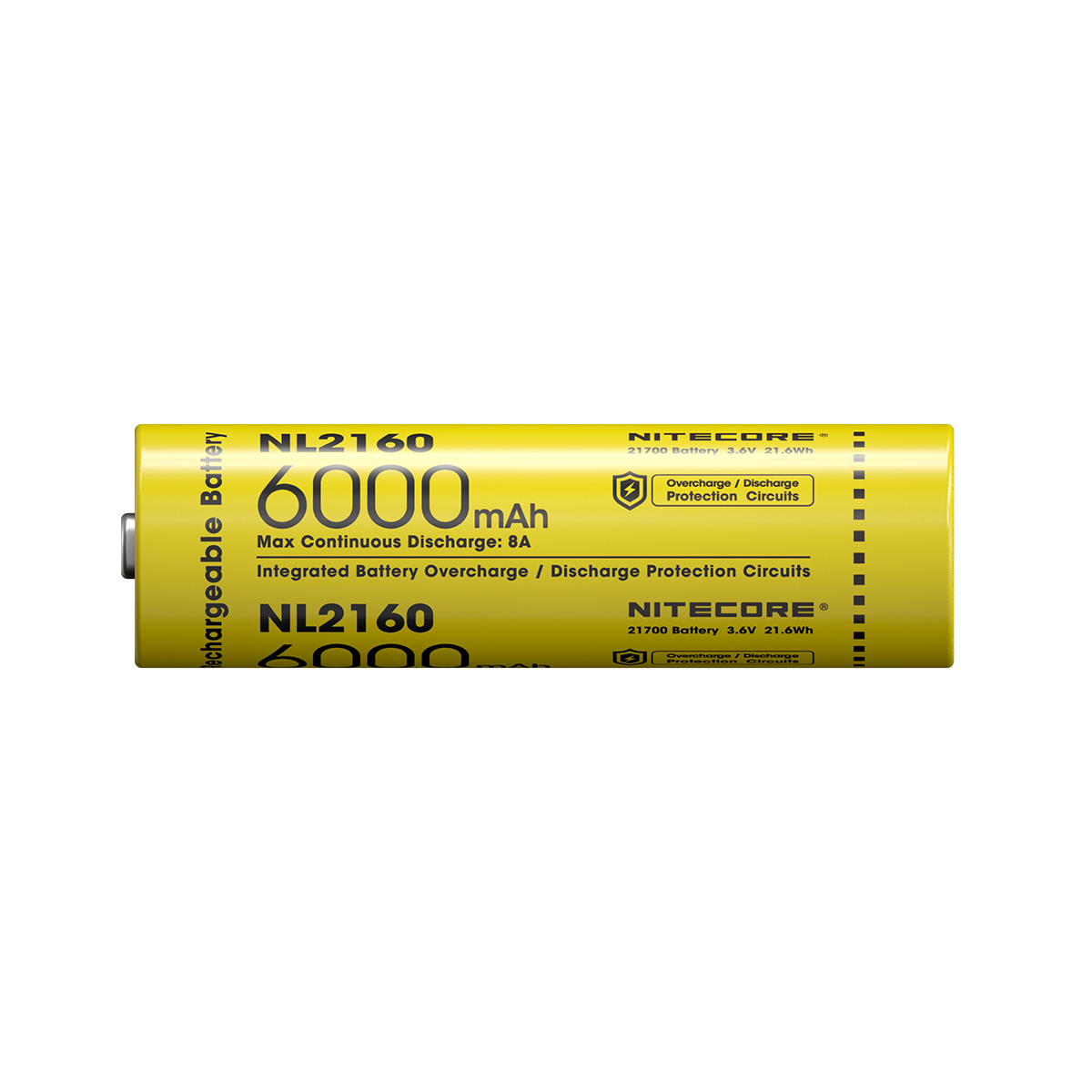Η νέας γενιάς επαναφορτιζόμενη μπαταρία Li-ion NL2160 της Nitecore προσφέρει μία εξαιρετική λύση για του χρήστες που απαιτούν μέγιστη απόδοση και αξιοπιστία. Με εντυπωσιακή χωρητικότητα 6000mAh και ρεύμα συνεχούς αποφόρτισης 8Α, η μπαταρία αυτή παρέχει 20% μεγαλύτερη χωρητικότητα σε σχέση με τις κοινές μπαταρίες τύπου Li-ion 21700, εξασφαλίζοντας παρατεταμένη και σταθερή παροχή ενέργειας για μια ευρεία γκάμα συσκευών.