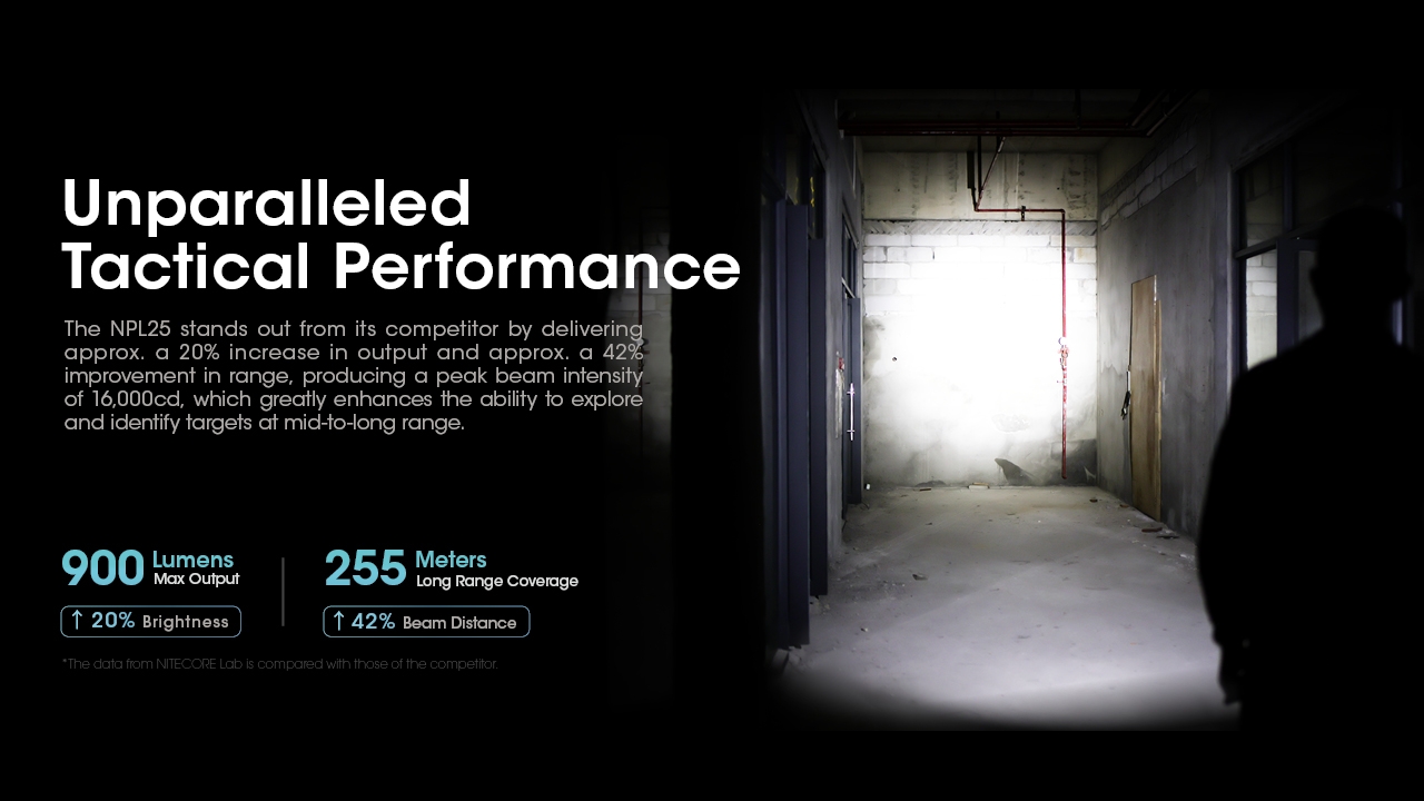 Ο συμπαγής επιχειρησιακός φακός NPL25 της Nitecore είναι σχεδιασμένος για επαγγελματίες που απαιτούν ανώτερη απόδοση σε απαιτητικές συνθήκες. Εξοπλισμένος με το εξαιρετικά υψηλής έντασης UHi LED UHi20, ο NPL25 αποδίδει εντυπωσιακή ισχύ φωτισμού έως 900 Lumens, φτάνοντας σε μέγιστη απόσταση δέσμης τα 255 μέτρα, εξασφαλίζοντας έτσι τη βέλτιστη ορατότητα ακόμα και σε μεγάλες αποστάσεις.