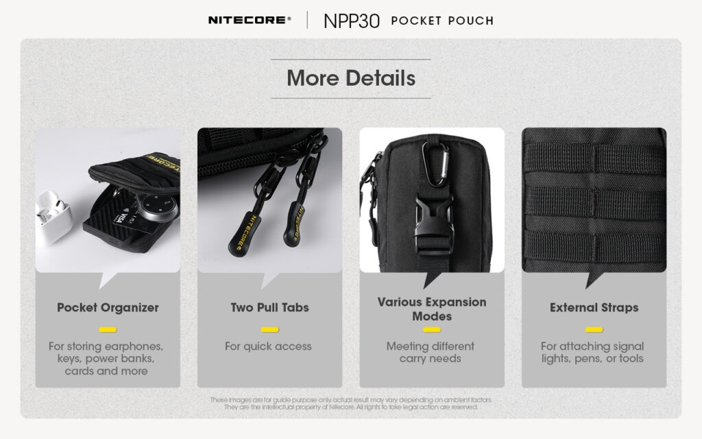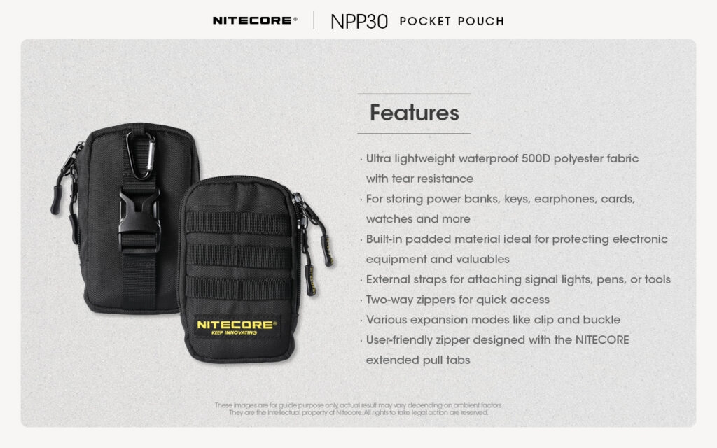 Tο τσαντάκι χειρός NPP30 Pocket Pouch της Nitecore, είναι μία θήκη μεταφοράς με μοντέρνο design και κατάλληλο για εσάς που είστε πολλές ώρες εν κινήσει. Είναι ειδικά σχεδιασμένο για τις υπαίθριες περιπέτειες σας και τα ταξίδια!