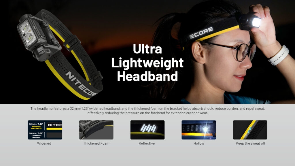 Φορτίζεται στο 80% σε μόλις μία ώρα και πλήρως σε 1,5 ώρα, εξασφαλίζοντας ότι είστε πάντα έτοιμοι για δράση. Με φαρδύ ελαστικό ιμάντα 32 mm και αφρώδες στρώμα για απορρόφηση κραδασμών, μείωση της επιβάρυνσης και απώθηση του ιδρώτα, μειώνοντας αποτελεσματικά την πίεση στο μέτωπο κατά την παρατεταμένη χρήση σε εξωτερικούς χώρους. Με ανακλαστικές λωρίδες στα πλαϊνά του ιμάντα, διάτρητη κατασκευή για καλό αερισμό και λωρίδα σιλικόνης που κατευθύνει τον ιδρώτα μακριά από τα μάτια.
