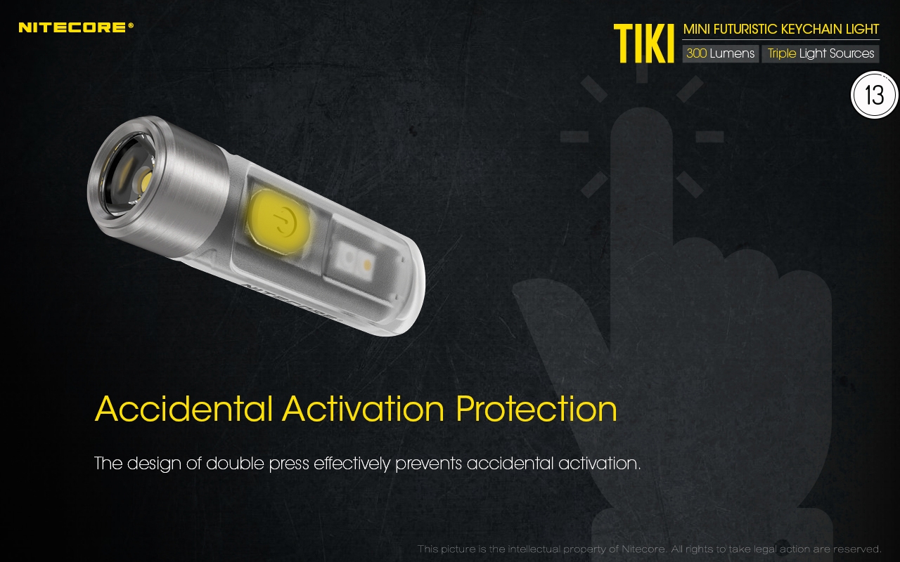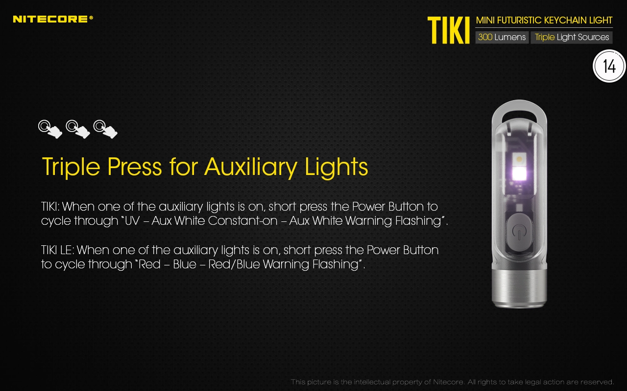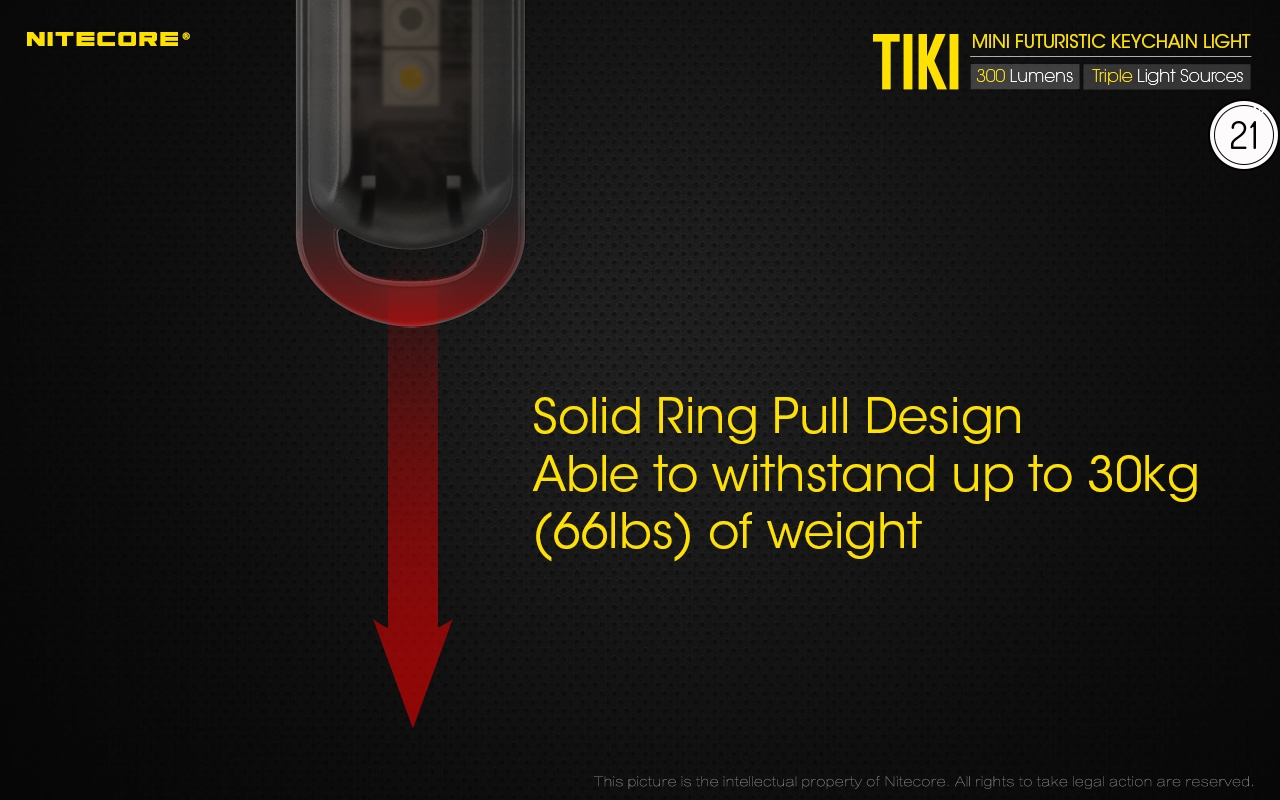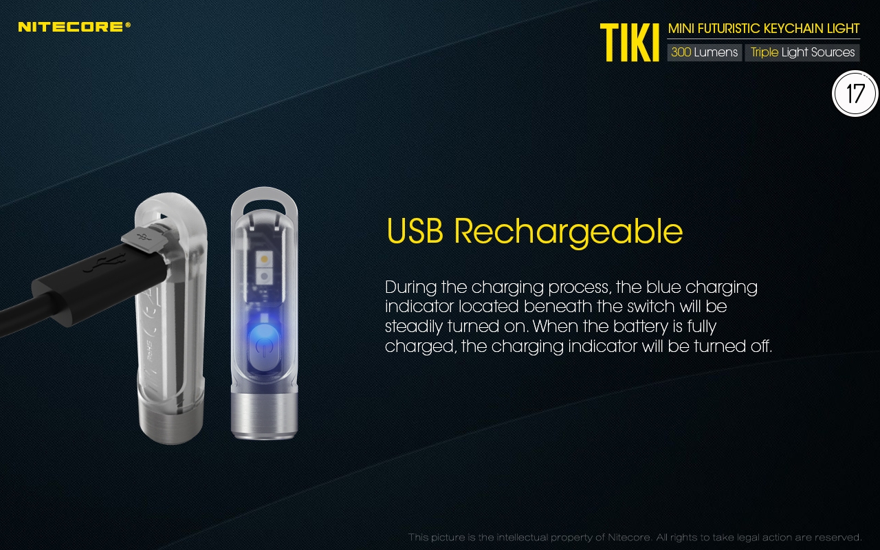 Ο μικρός φακός TIKI LE της Nitecore για τα κλειδιά νέας σχεδίασης, εξαιρετικά ελαφρύς 10g, επαναφορτιζόμενος από USB, πολύ ισχυρός 300 Lumens! Mε τρεις (3) διαφορετικές πηγές φωτισμού. Κατασκευασμένα από ανθεκτικά πολυκαρβονικά υλικά (PC V0) που χρησιμοποιούνται κυρίως στην αεροναυπηγική βιομηχανία και την βιομηχανία ηλεκτρονικών, το TIKI εξασφαλίζει άνετο και σταθερό κράτημα και λειτουργούν ως πολύ μικρά και ελαφριά φουτουριστικά γκάτζετ.