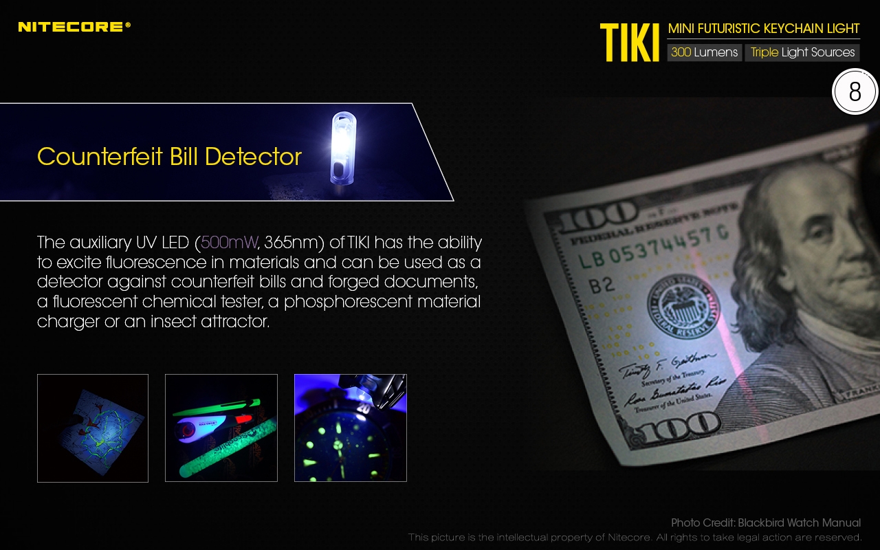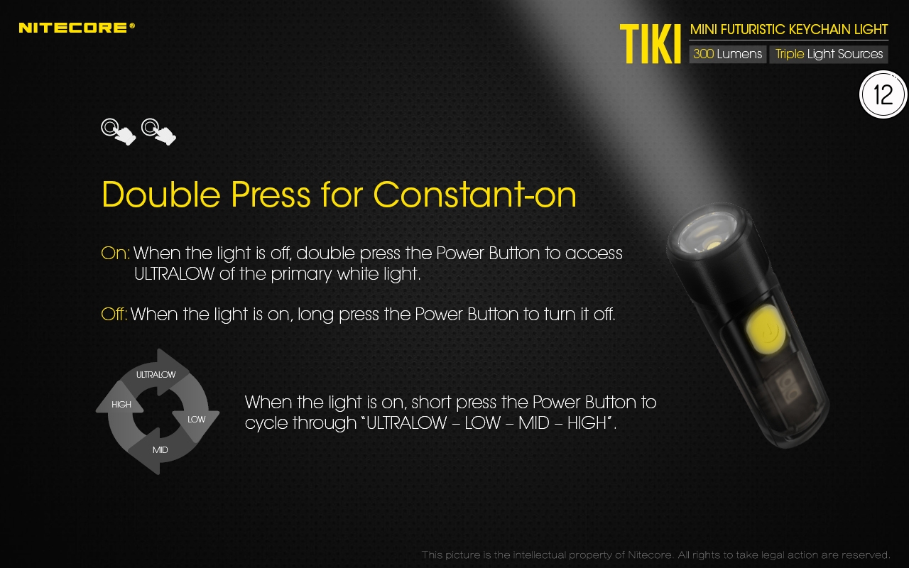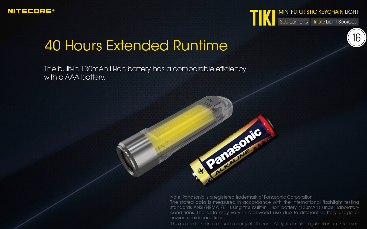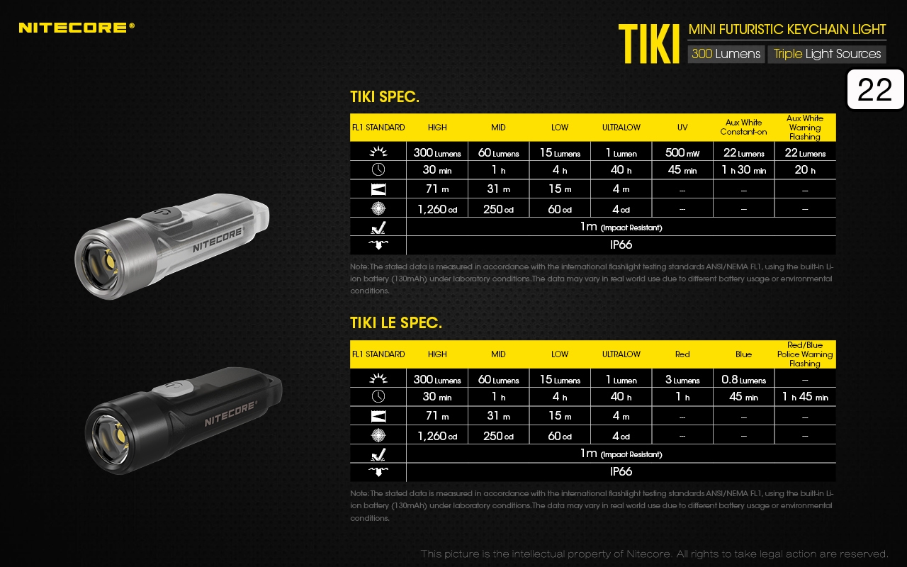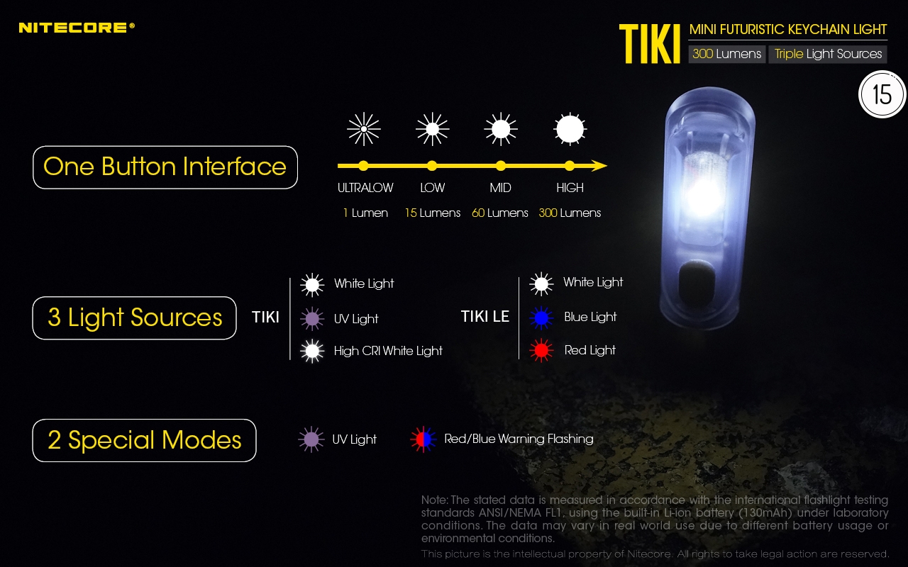 Ο μικρός φακός TIKI LE της Nitecore για τα κλειδιά νέας σχεδίασης, εξαιρετικά ελαφρύς 10g, επαναφορτιζόμενος από USB, πολύ ισχυρός 300 Lumens! Mε τρεις (3) διαφορετικές πηγές φωτισμού. Κατασκευασμένα από ανθεκτικά πολυκαρβονικά υλικά (PC V0) που χρησιμοποιούνται κυρίως στην αεροναυπηγική βιομηχανία και την βιομηχανία ηλεκτρονικών, το TIKI εξασφαλίζει άνετο και σταθερό κράτημα και λειτουργούν ως πολύ μικρά και ελαφριά φουτουριστικά γκάτζετ.