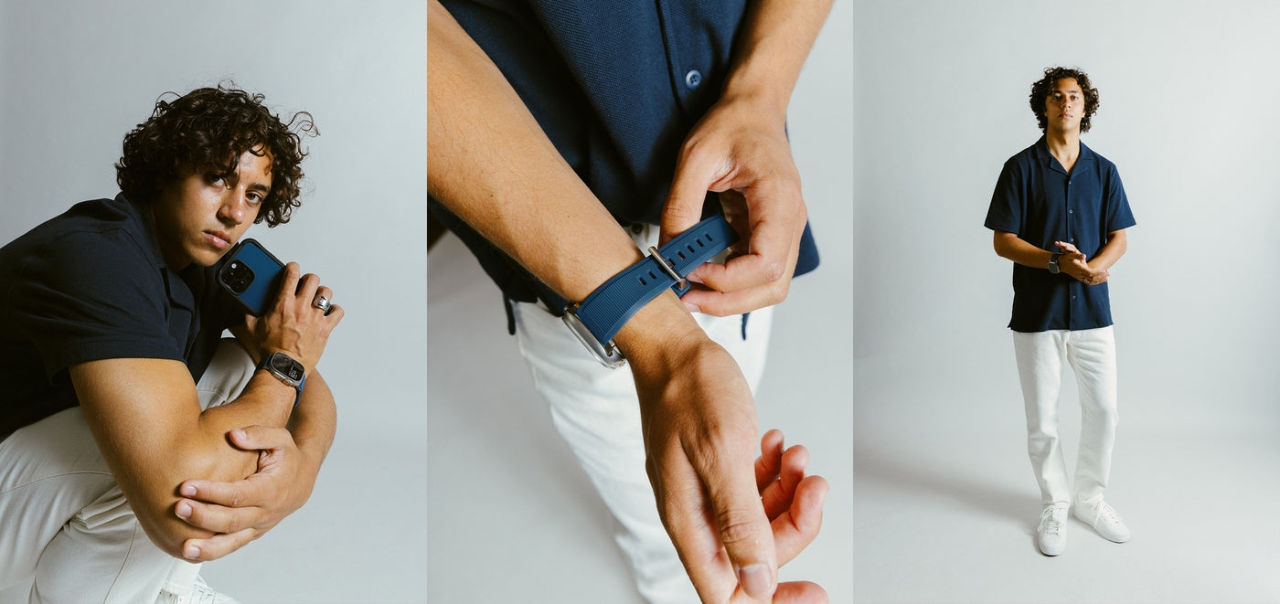 Το Rugged Band είναι ιδιαίτερα ελαφρύ και είναι κατασκευασμένο από αδιάβροχο φθοριοελαστομερές, δηλαδή ένα εύκαμπτο καουτσούκ FKM, το οποίο χρησιμοποιείται σε απαιτητικές εφαρμογές στην αυτοκινητοβιομηχανία και τη φαρμακευτική βιομηχανία. Είναι ανθεκτικό στις υψηλές θερμοκρασίες, στην έκθεση στο ηλιακό φως ή στις χημικές ουσίες.