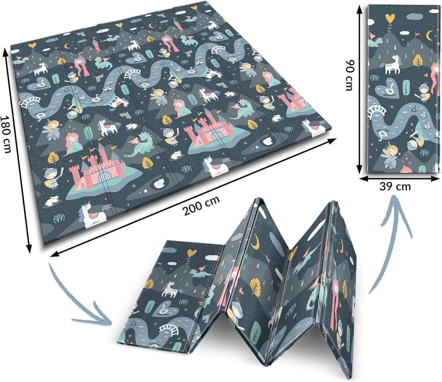 Η επένδυση από αφρώδες υλικό, προσφέρει μια μαλακή περιοχή για να παίξει το παιδί ή το μωρό σας. Έτσι, μπορεί να παίζει πάνω στο χαλάκι, χωρίς να ανησυχείτε για τυχόν τραυματισμό λόγω σκληρού δαπέδου. Προσφέρει αρκετό χώρο για τις ώρες παιχνιδιού, καθώς διαθέτει διαστάσεις 200 x 180 x 1 cm και είναι κατασκευασμένο από αφρό XPE. Επίσης, με αυτό το χαλάκι το μωράκι σας μπορεί να μάθει να περπατάει.