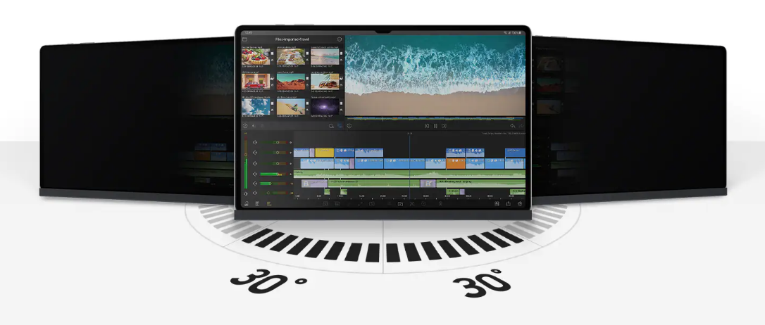 Το προστατευτικό οθόνης Privacy Screen Protector περιορίζει τη γωνία προβολής της οθόνης του tablet σας στις 30 μοίρες, στον οριζόντιο προσανατολισμό, δημιουργώντας εφέ μαύρης οθόνης για όλους εκτός από εσάς.